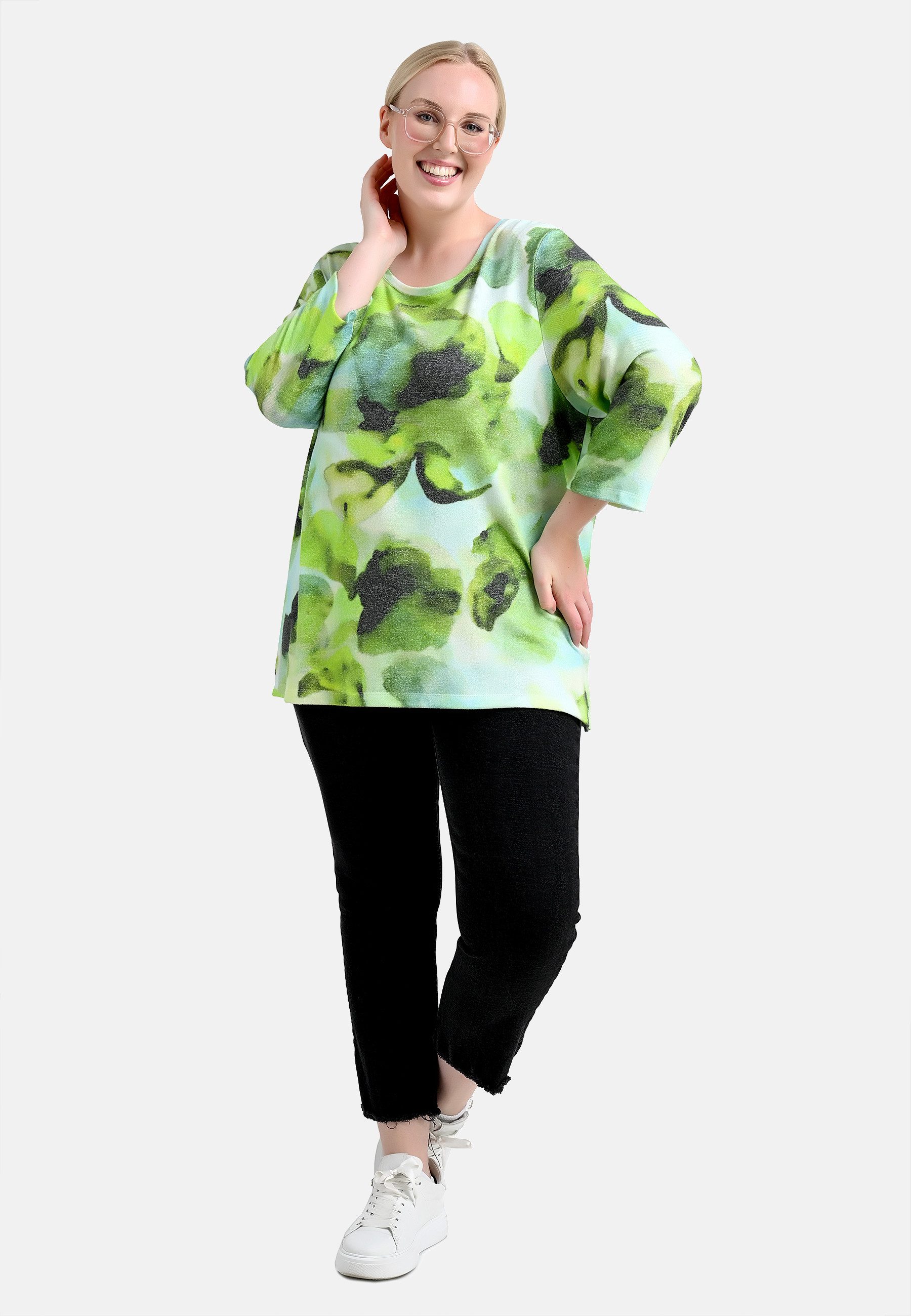 Dieses Feinstrick-Shirt von elanza verspricht pures Wohlfühlen: Super weicher und leichter Feinstrick, der dank sehr hohem Viskoseanteil angenehm glatt auf der Haut liegt und einen edlen Fall hat und ein Schnitt, der locker aber dennoch leicht tailliert ist. Die kraftvollen Grüntöne bilden ein großes Blütenmuster und machen das Shirt zu einem echten Hingucker an tristen Tagen. Der Rundhals-Ausschnitt schafft zusammen mit den 3/4-Ärmeln eine schöne Silhouette und die seitlichen Saumschlitze geben dem Shirt zusätzliche Bewegungsfreiheit. Kombiniert mit den neuen elanza-Comfort-Jeans oder dem neuen Strickcardigan der aktuellen Kollektion, kreieren Sie einen Look, der nicht nur toll aussieht, sondern sich auch unbeschreiblich anfühlt.