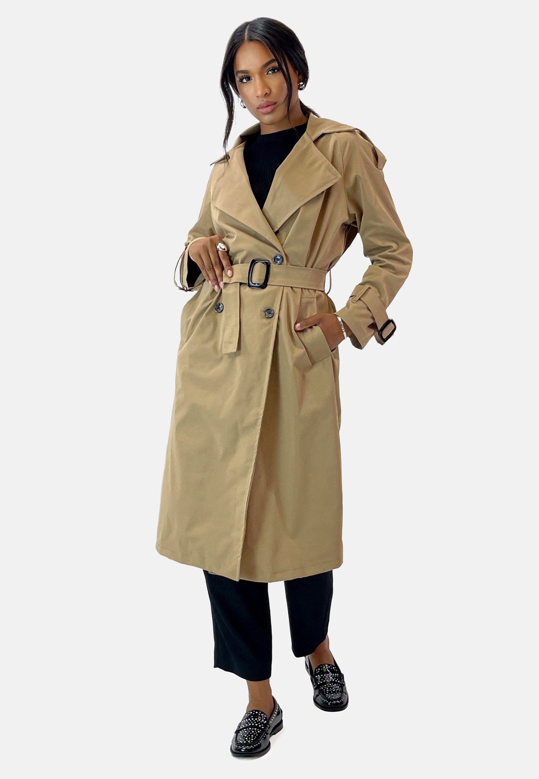 Zeitloses Design: Der klassische Trenchcoat-Schnitt ist eine Hommage an zeitlose Eleganz. Mit seinen markanten Details wie Schulterklappen, Gürtel, Knöpfen und einem charmanten Rev