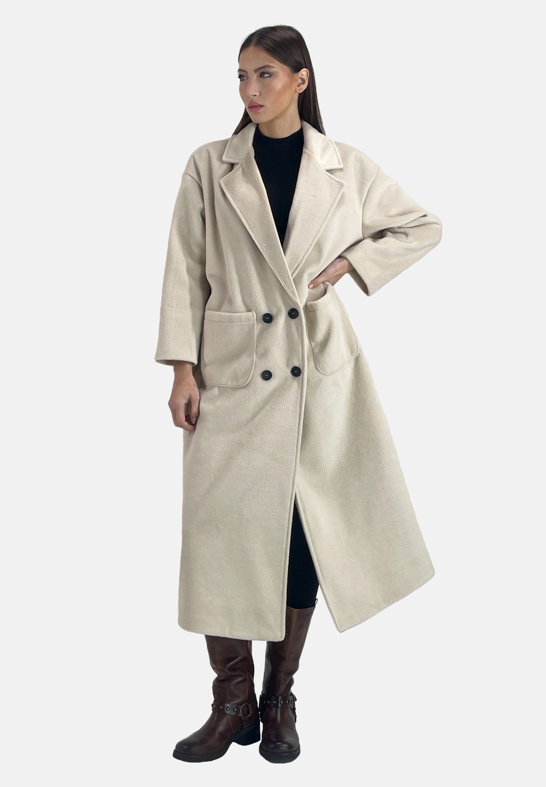 Komfort und Passform: Der italienische Mantel wurde mit einem Fokus auf Tragekomfort und Passform entworfen. Er bietet ausreichend Bewegungsfreiheit, ohne an Eleganz einzubüßen. Der verstellbare Gürtel betont Ihre Taille, während die geräumigen Taschen Funktionalität und Stil vereinen.