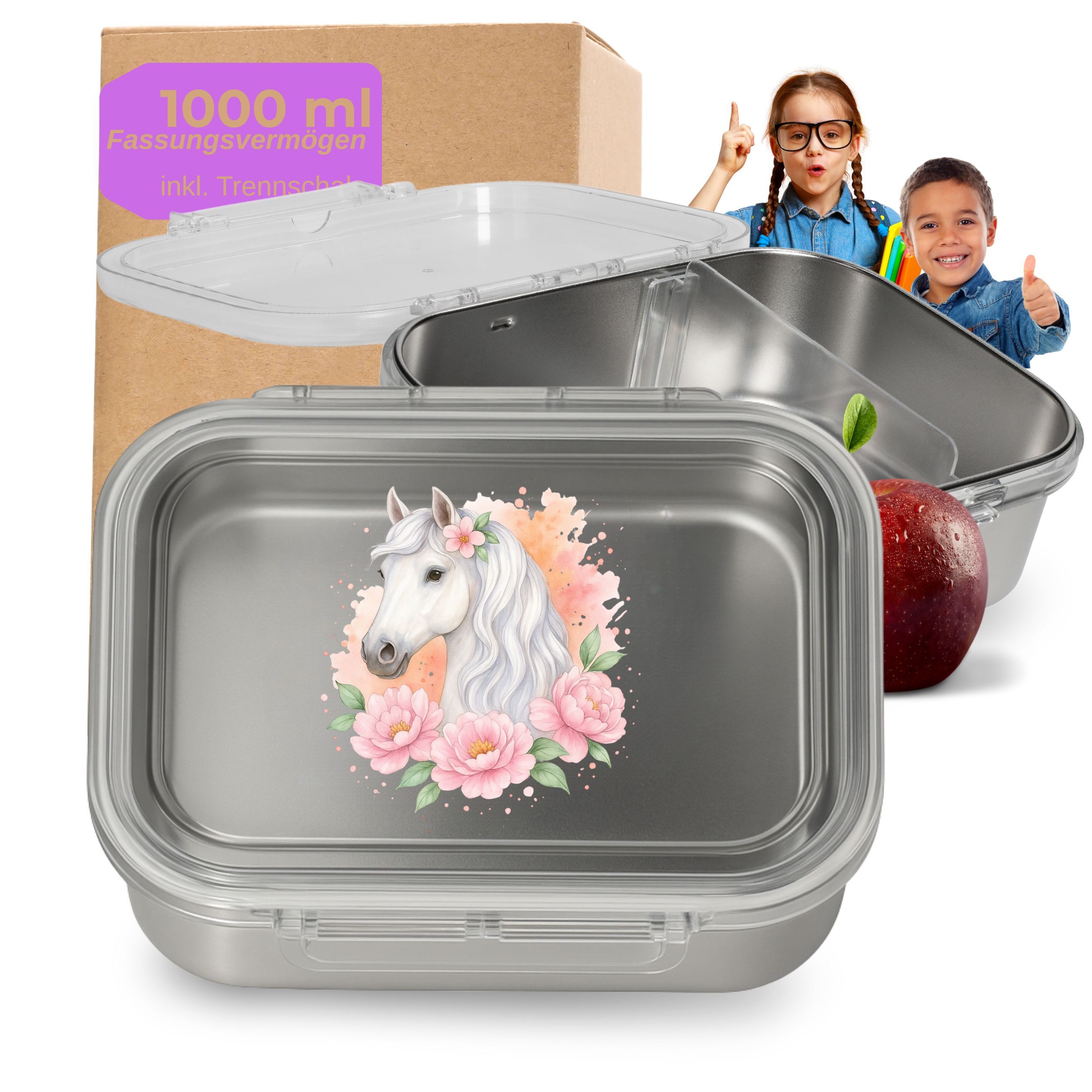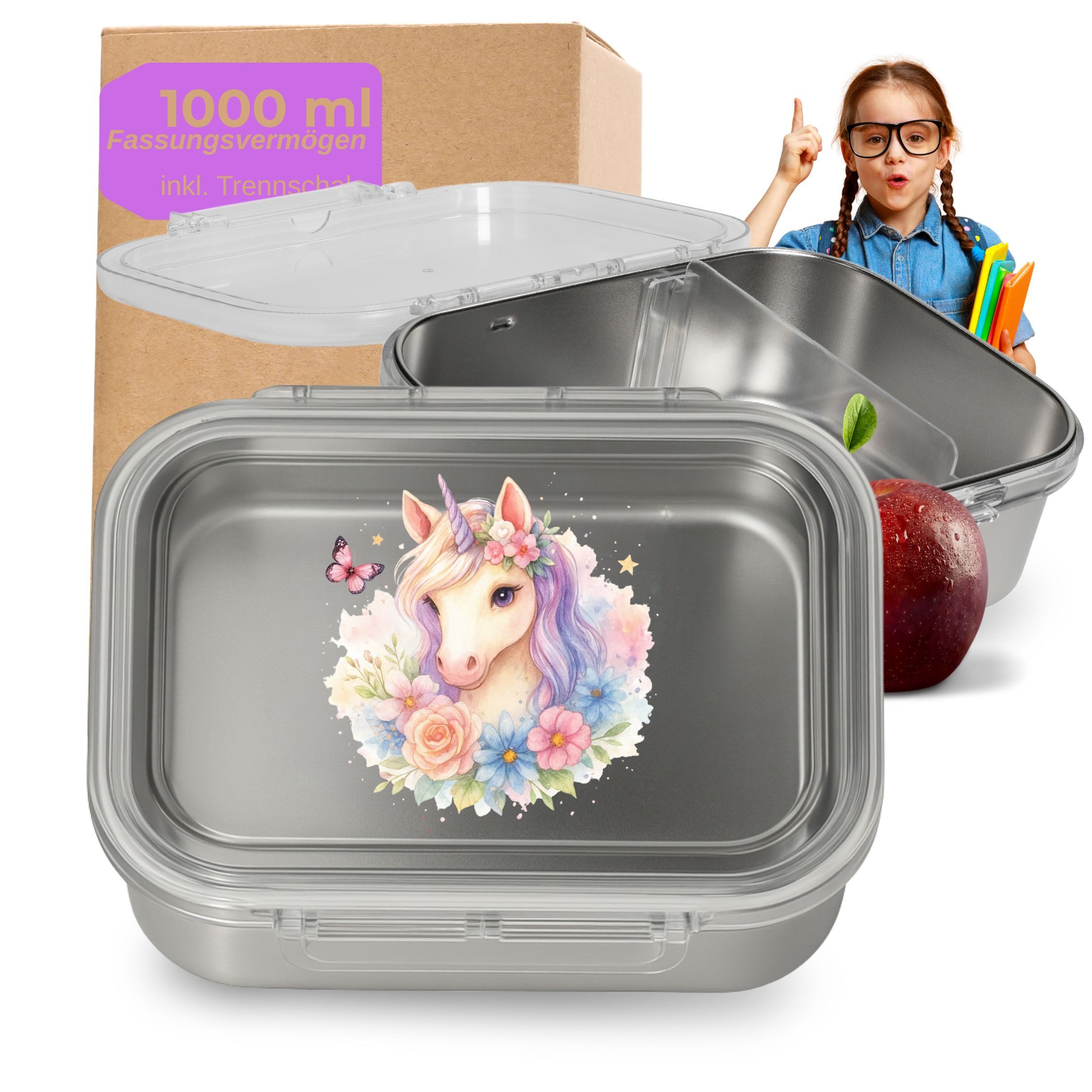 Mit etwa 1000 ml Fassungsvermögen bietet die Lunchbox ausreichend Volumen für komplette Mittagsmahlzeiten und mehrere Snacks so ersetzt die Dose Einwegverpackungen und unterstützt nachhaltiges Verhalten im Alltag