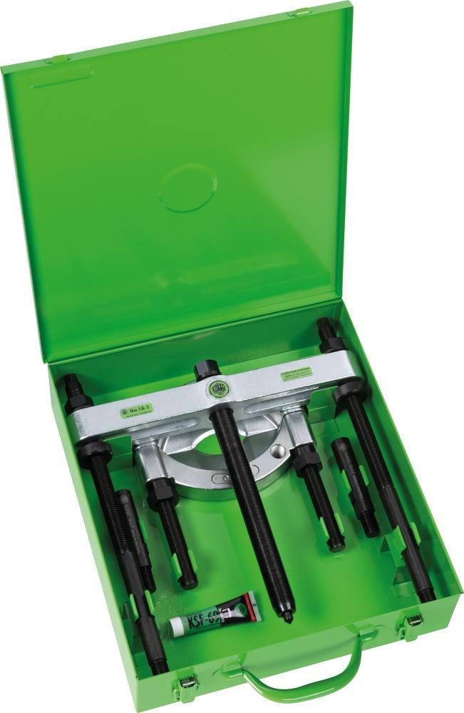 Trennvorrichtungs-Satz Nr. 15-K• Zum Abziehen von Kugellagern, Rollenlagern, Innenringen und anderen bündig aufsitzenden Teilen Lieferung : In i-BOXX. Inhalt: 1 Trennvorrichtung Nr. 15-0 1 Abziehvorrichtung Nr. 18-0 1 Paar Verlängerungen, passend zu Nr. 18–0• 18–1