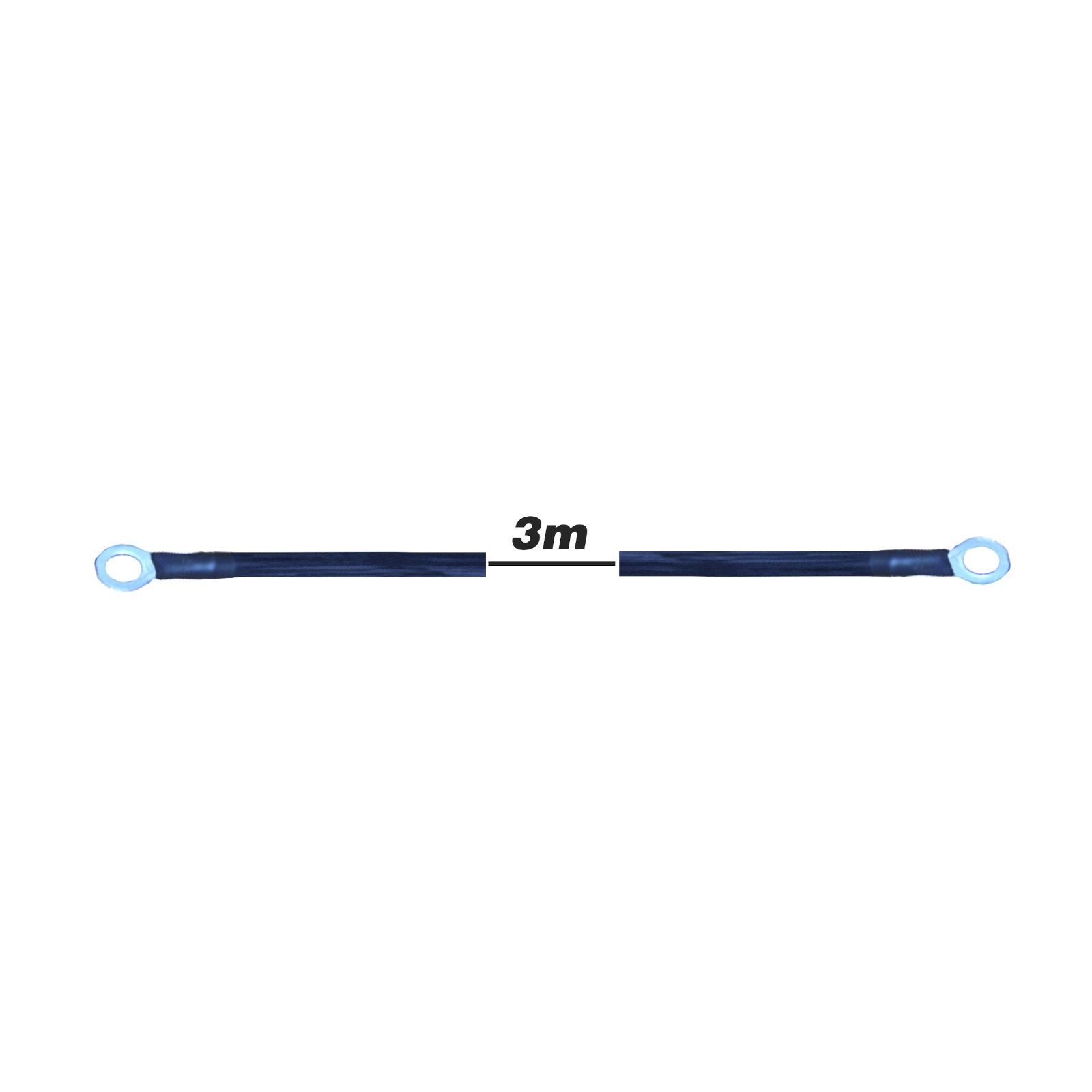 Das schwarze Kabel hat einen Durchmesser von 7 mm und eine Длина von 3 m. Die Befestigung ist sehr einfach und erfolgt mit Hilfe zweier Ringösen, die einen Durchmesser von je 8,4 mm haben.