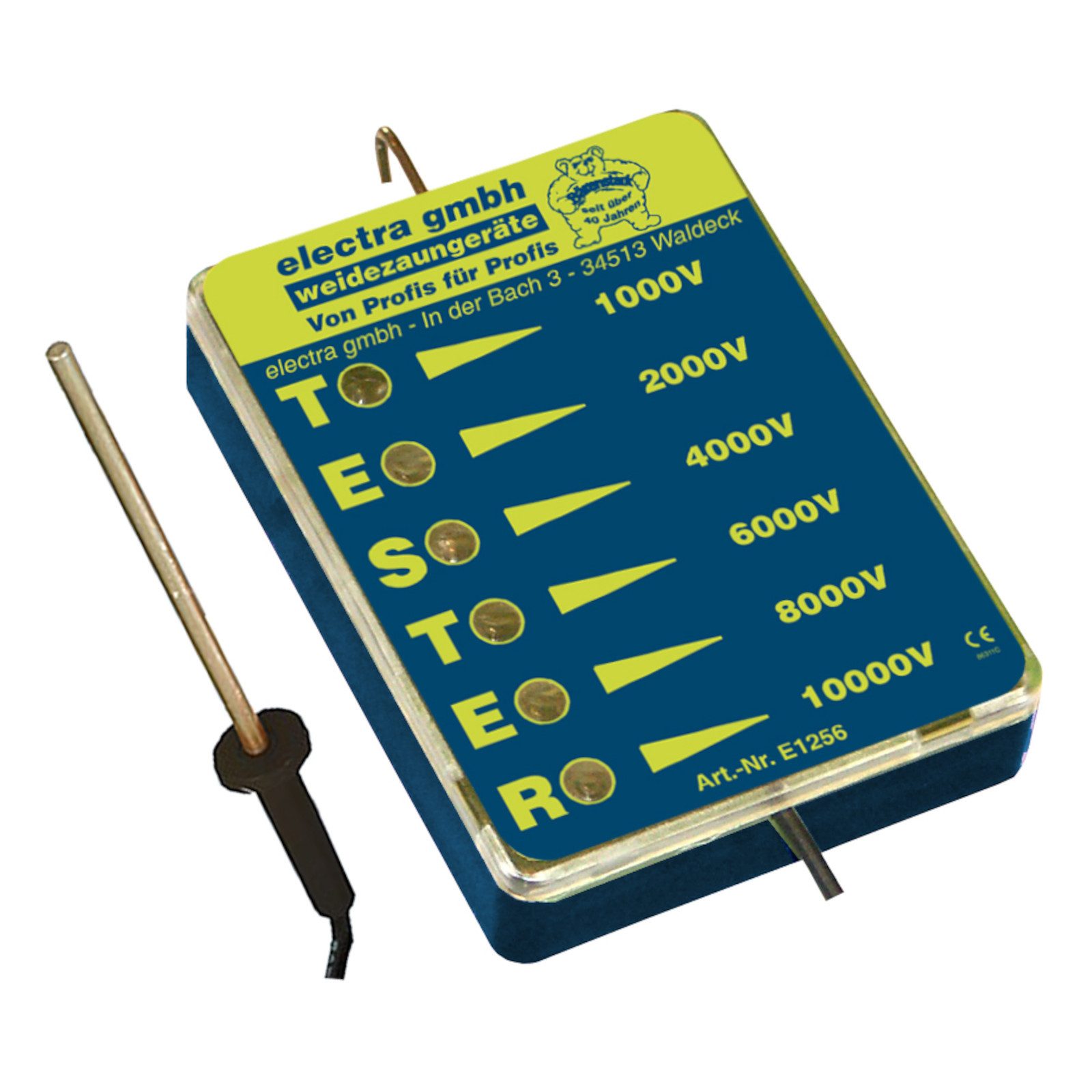 Komfortabler und leicht zu bedienender 6-stufiger Zaun- und Geräteprüfer, Messbereich von 1000V bis 10000V. Leuchtet nur noch eine Lampe (1000V), ist keine Hütesicherheit mehr vorhanden.
