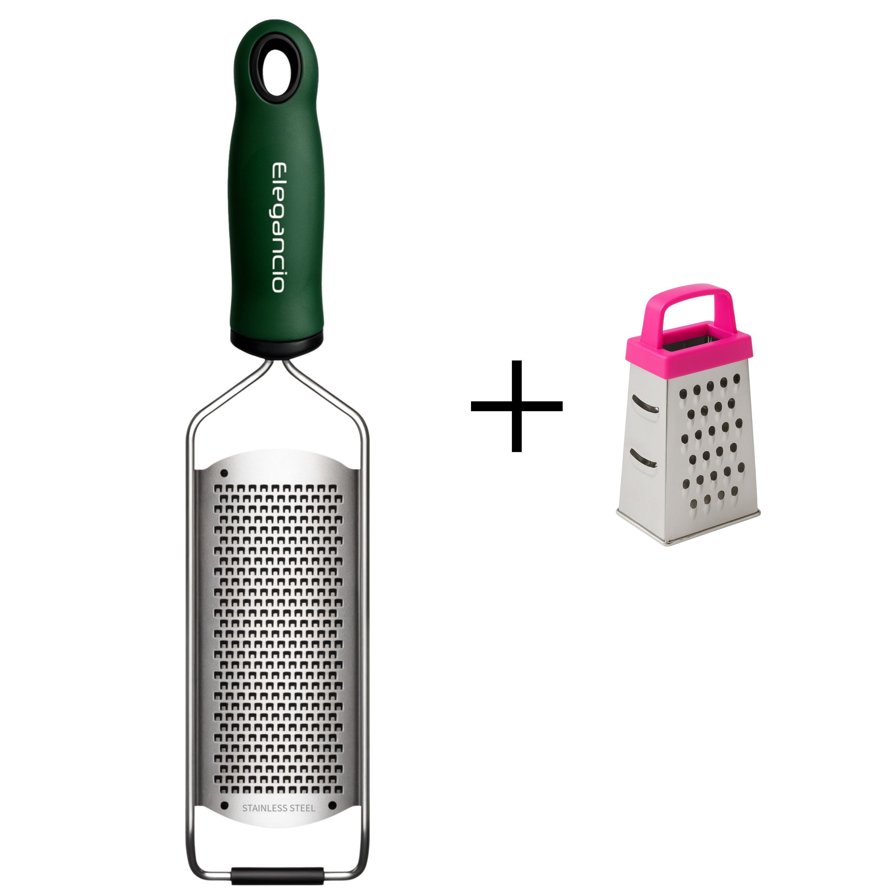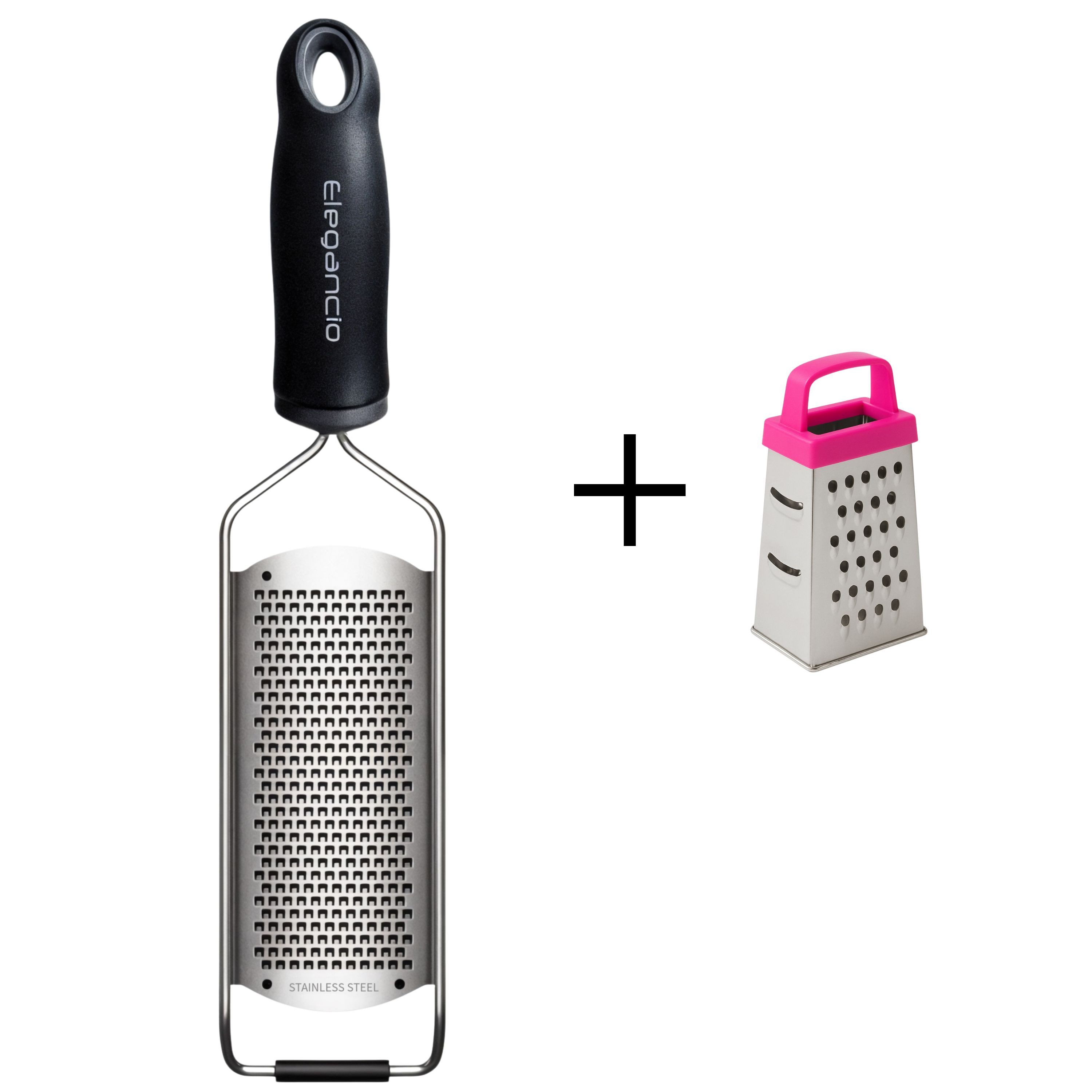 Der ergonomisch geformte Griff liegt angenehm in der Hand und bietet durch die rutschhemmende Oberfläche einen sicheren Halt auch bei feuchten Händen. Zusätzlich sorgt ein gummierter Endbereich für Stabilität beim Reiben und ermöglicht es, die Reibe flexibel in unterschiedlichen Winkeln einzusetzen – für eine individuelle Handhabung je nach Lebensmittel und Druckbedarf.