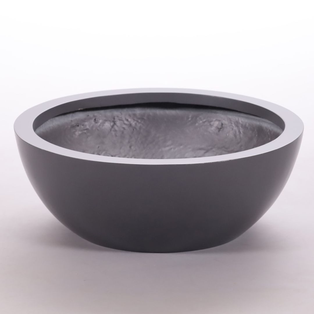 Die noble Pflanzschale aus Fiberglas bietet viel Platz für Ihre persönlichen Blumenträume. Sie können ihn als Übertopf verwenden oder direkt bepflanzen. Bei direkter Bepflanzung bitte ein Ablaufloch in den Boden des Gefäßes bohren, damit sich keine Staunässe bildet. Arrangieren Sie viele kleine Pflanzen oder eine große. Auch mit Deko-Sand oder -Steinen können Sie spielen: Stellen Sie einen Blumentopf in die Mitte der Schale und befüllen Sie die Ränder mit buntem Sand oder farbigen Steinen. Das tiefe Schwarz lässt die Farben Ihrer Pflanzen strahlen und bleibt auch bei langem Einsatz im Freien unverändert schön. Sie macht im Garten, auf der Terrasse oder dem Balkon den Unterschied, indem sie für einen eleganten Blickfang sorgt.