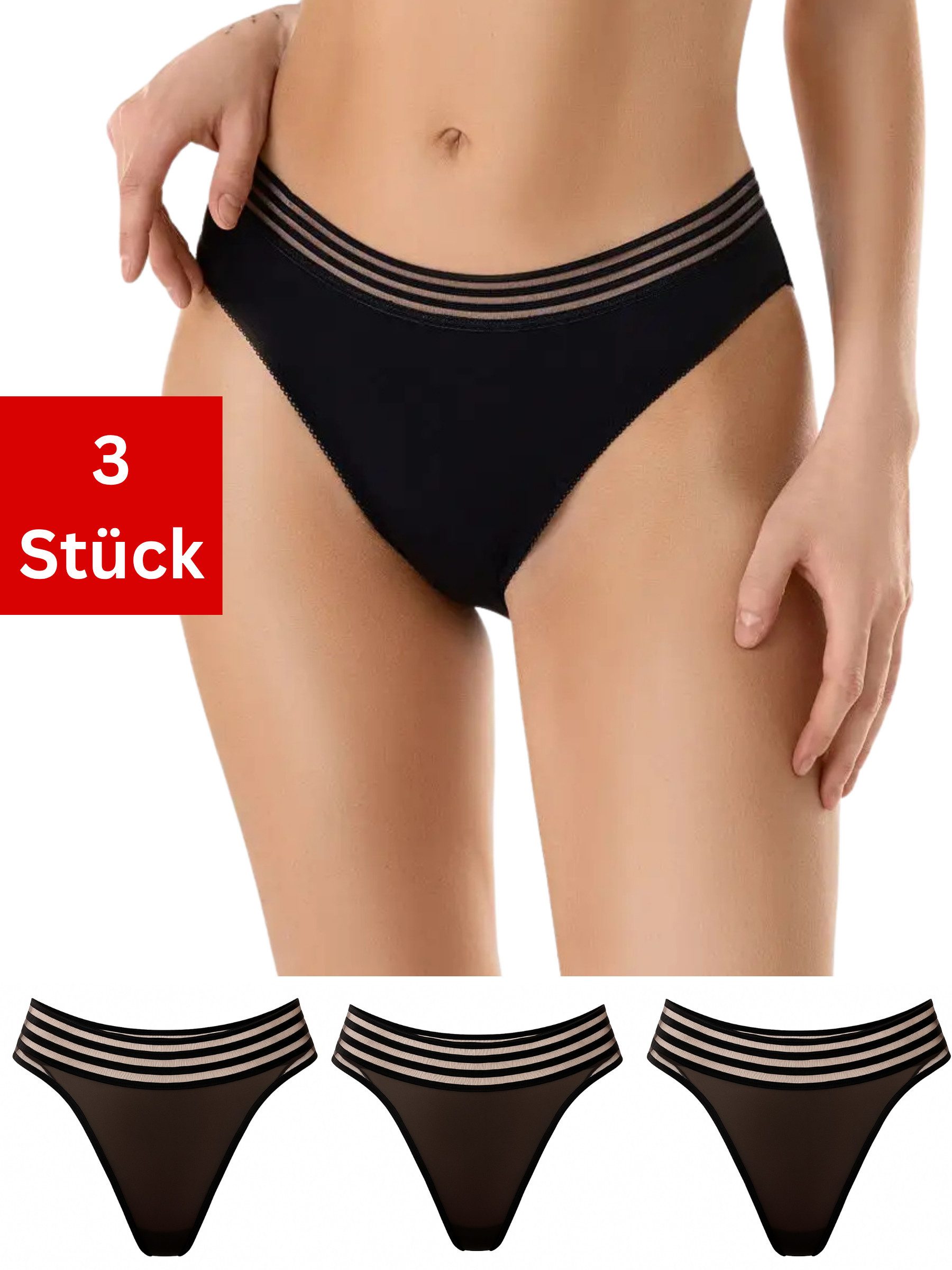 Dieser Taillenslip im praktischen 3er-Pack kombiniert stilvolles Design mit hohem Tragekomfort und einer figurschmeichelnden Passform. Der sexy Brasilien-Tanga aus feinem Material setzt feminine Akzente und betont gekonnt die weibliche Silhouette. Dank der hohen Taille wirkt der Slip leicht formend und sorgt für einen glatten Bauchbereich, ohne einzuengen. Weiche, elastische Materialien garantieren ein angenehmes Hautgefühl und perfekten Sitz – ideal für Alltag, Freizeit oder besondere Anlässe. Ob als bequeme Damenunterwäsche oder sinnliches Dessous-Höschen – dieser Taillenslip ist ein vielseitiges Must-have für jede Lingerie-Kollektion.Farbe | чёрный |