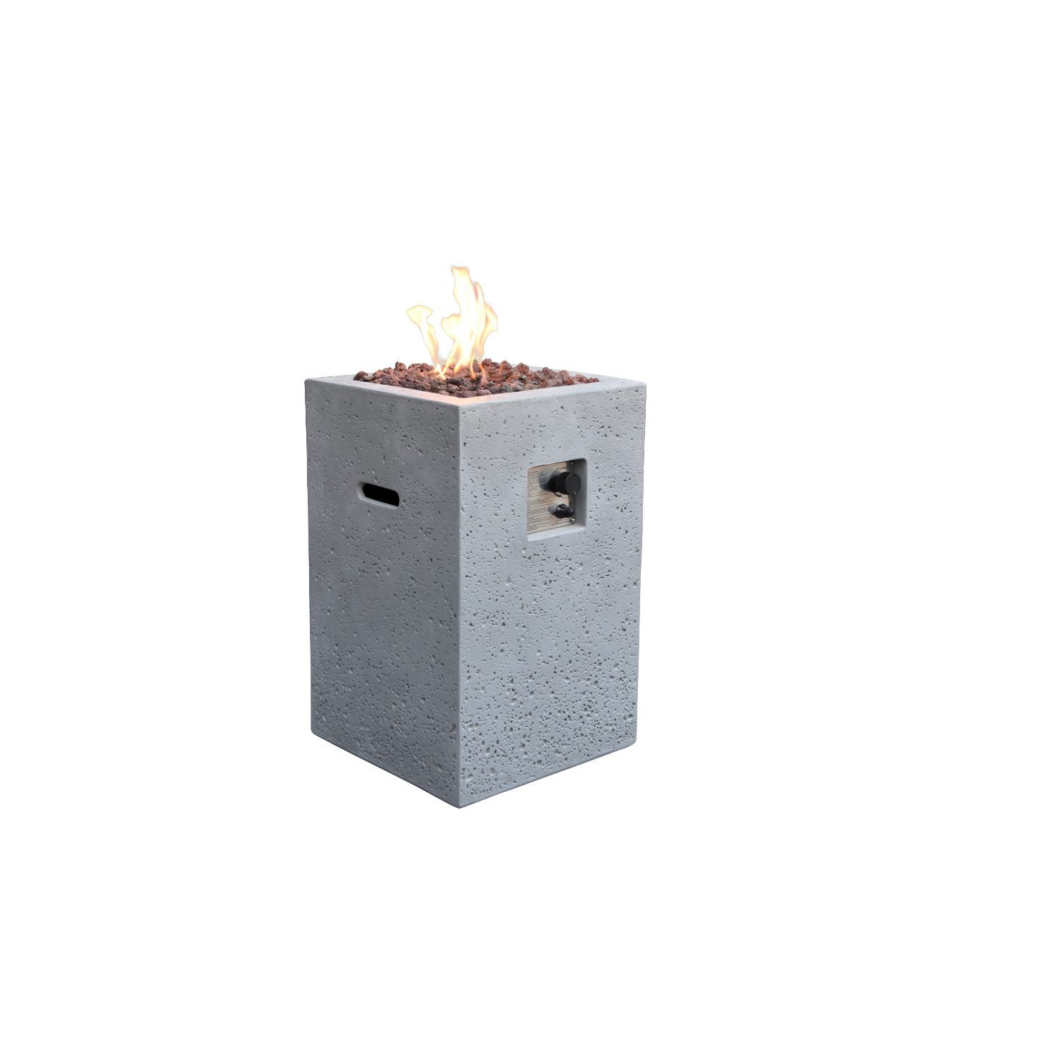 Feuerstelle in Basaltoptik 48 x 50 x 70 cm (L x B x H) Die Deko Feuerstelle aus Faserbeton wird mit Gas betrieben und ist in Basalt- und Naturstein-Optik erhältlich. Dieser Look lässt sich in jeden Garten einwandfrei integrieren. Sei es als extra Blickfang zwischen den Pflanzen und Blumenbeeten oder verspielt versteckt in einem Steingarten, in dem erst das Flammenspiel die Deko Feuerstelle in Szene setzt. Mit dem vorhandenen Gas-Regler kann durch die Regulierung der Gas-Zufuhr die Flammenhöhe bequem bestimmt werden, um die Wirkung des Feuers zu verstärken oder minimieren. Für ein noch natürlicheres Feuerspiel sorgen die rötlichen Lavasteine, die als Dekor auf der Brennerschale verteilt werden. Der integrierte Druckminderer ist für den notwendigen Druckausgleich zuständig. Dieser ist an dem Schlauch angebracht, an dem eine handelsübliche Butan- oder Propan-Gasflasche direkt angeschlossen werden kann. Mehr Sicherheit verleiht die eingebaute Umkippsicherung, die den Gasfluss automatisch unterbricht, falls z.B. während einer stürmischen Gartenparty, die Feuerstelle in eine Schieflage geraten sollte. Der Feuerstellen-Innenraum bietet die optimale Möglichkeit die Gasflasche unterzubringen. Somit haben Sie keinen Blickstörer und können gleichzeitig die Feuerstelle mit der Gasflasche flexibel da platzieren, wo sie am besten zur Geltung kommt. Feuertstelle in Naturstein-Optik 45 x 45 x 70 cm (L x B x H) Die Gas Feuerstelle Kelut aus Faserbeton in heller Natursteinoptik zeichnet sich durch eine glatt verarbeitete Oberfläche mit einem typischen Betonmuster aus. Das helle Grau wirkt sehr freundlich und im Zusammenspiel mit der Gasflamme sorgt es für mehr Helligkeit, was besonders in den dunklen Abendstunden zum Vorteil wird. Die beigefügten rötlichen Lavasteine, welche auf der Brennerschale platziert werden, sorgen für eine zusätzliche Attraktion. Der elektronische Zünder und der stufenlose Gas-Regulierer sind seitlich an der Feuerstelle installiert. Mit dem Gas-Regulierer haben Sie die Möglichkeit die Gas-Zufuhr und somit die Höhe der Flamme zu steuern. Die seitlich vorhandenen Grifflöcher helfen beim Bewegen bzw. Tragen der Feuerstelle. Diese sind optisch gleich mit dem Griffloch des Deckels gestaltet, welcher herausgenommen werden kann, um eine Gasflasche darin zu verstauen. In dem Innenraum der Gas-Feuerstelle passt sowohl eine 5 kg als auch 11 kg Gasflasche. Um die Gas-Zufuhr bei einer Schieflage der Feuerstelle automatisch zu unterbrechen, verfügt diese über eine integrierte Umkippsicherung. Eigenschaften und Vorteile: Deko Feuerstelle Basalt-Optik 48 x 50 x 70 cm (L x B x H) Naturstein-Optik 45 x 45 x 70 cm (L x B x H) wetterfest inkl. rötliche Lavasteine inkl. hochwertige Wetterschutzhaube integrierbare Gasflasche