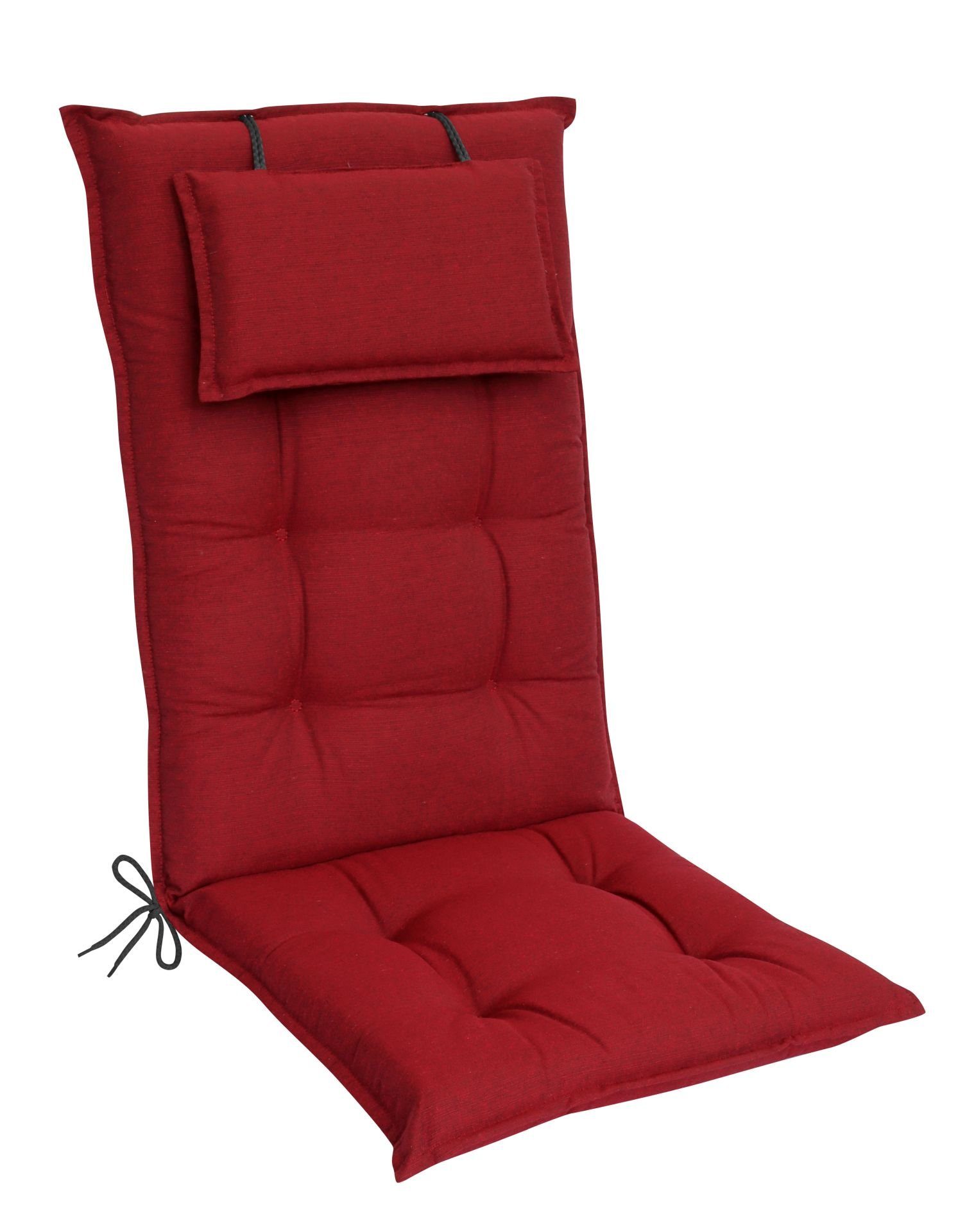 Die Polsterauflage besteht aus einer Kombination hochwertiger Materialien. Der Bezug besteht aus hautfreundlichem und abriebfestem Polyester. Der 7 cm dicke Schaumstoffkern aus Polyurethan garantiert besten Sitzkomfort. Das Kopfpolster lässt sich entfernen. Der Schaumkern ist mit hochwertigem Marken-Polyestervlies ummantelt. An der Seite des Sitzkissens befinden sich Befestigungsbänder, mit denen das Kissen am Stuhl befestigt werden kann. Am Rücken befindet sich ein verstellbares Band, das an der Rückenlehne fixiert werden kann. Das Sitzkissen wird unter höchsten Produktionsstandards in Europa produziert und kann von Hand gewaschen werden. Das Sesselkissen ist mit einem 7 cm hohen, bequemen Schaumstoffkern ausgestattet. Die Füllung besteht aus Schaumstoff mit einer Wollbeschichtung. Ein umlaufender Stehsaum mit Kreisheftung macht die Auflage zu einem Hingucker. Bestens geeignet für Stühle mit hoher Rückenlehne aus Holz, Metall oder mit textilener Bespannung.