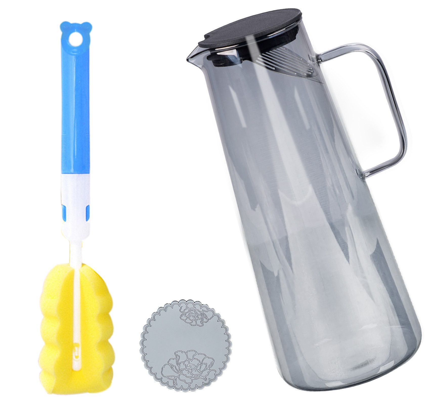 Lieferumfang | 1*Wasserkaraffe 1*Reinigungsbürste(zufällige Farbe) 1*Graue Topfmatte |