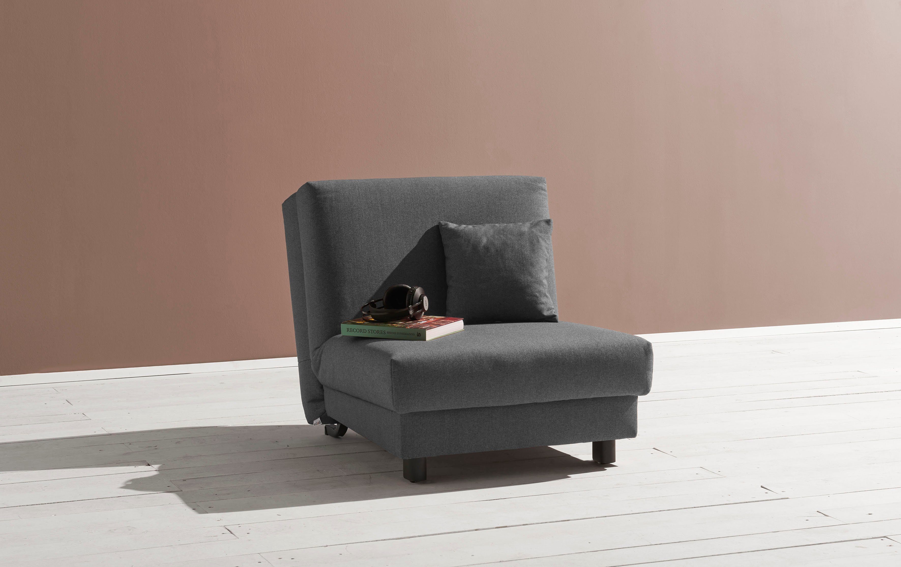 Wissenswertes | Optionale Relaxfunktion der Rückenlehne: Der Artikel ist wahlweise mit einer manuell verstellbaren Rückenfunktion erhältlich. Bei ausgeklappter Liegefäche ist die Rückenlehne hochklappbar bzw. absenkbar. |