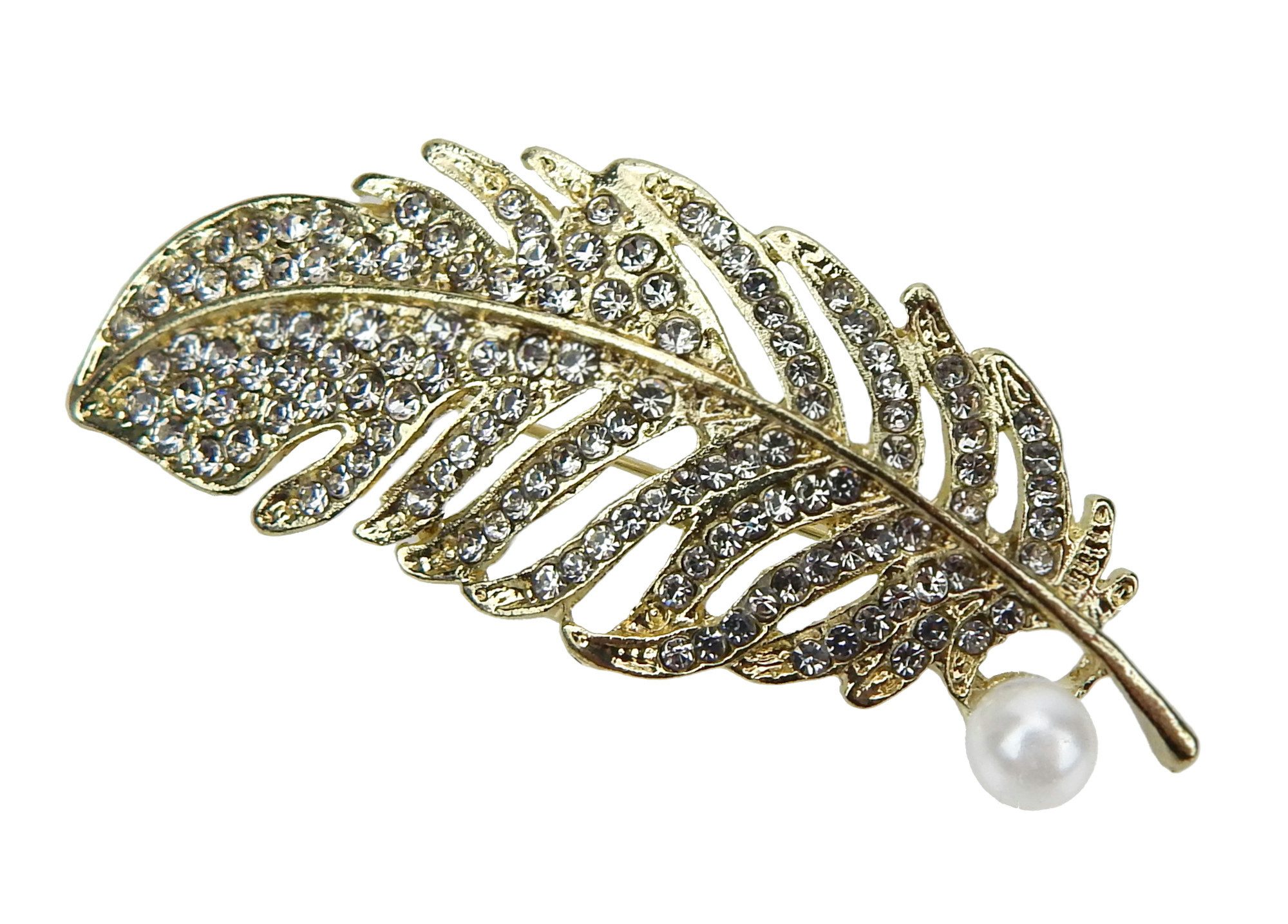 Besondere Merkmale | Feder gold mit Strasssteinen und Perle Anstecknadel |