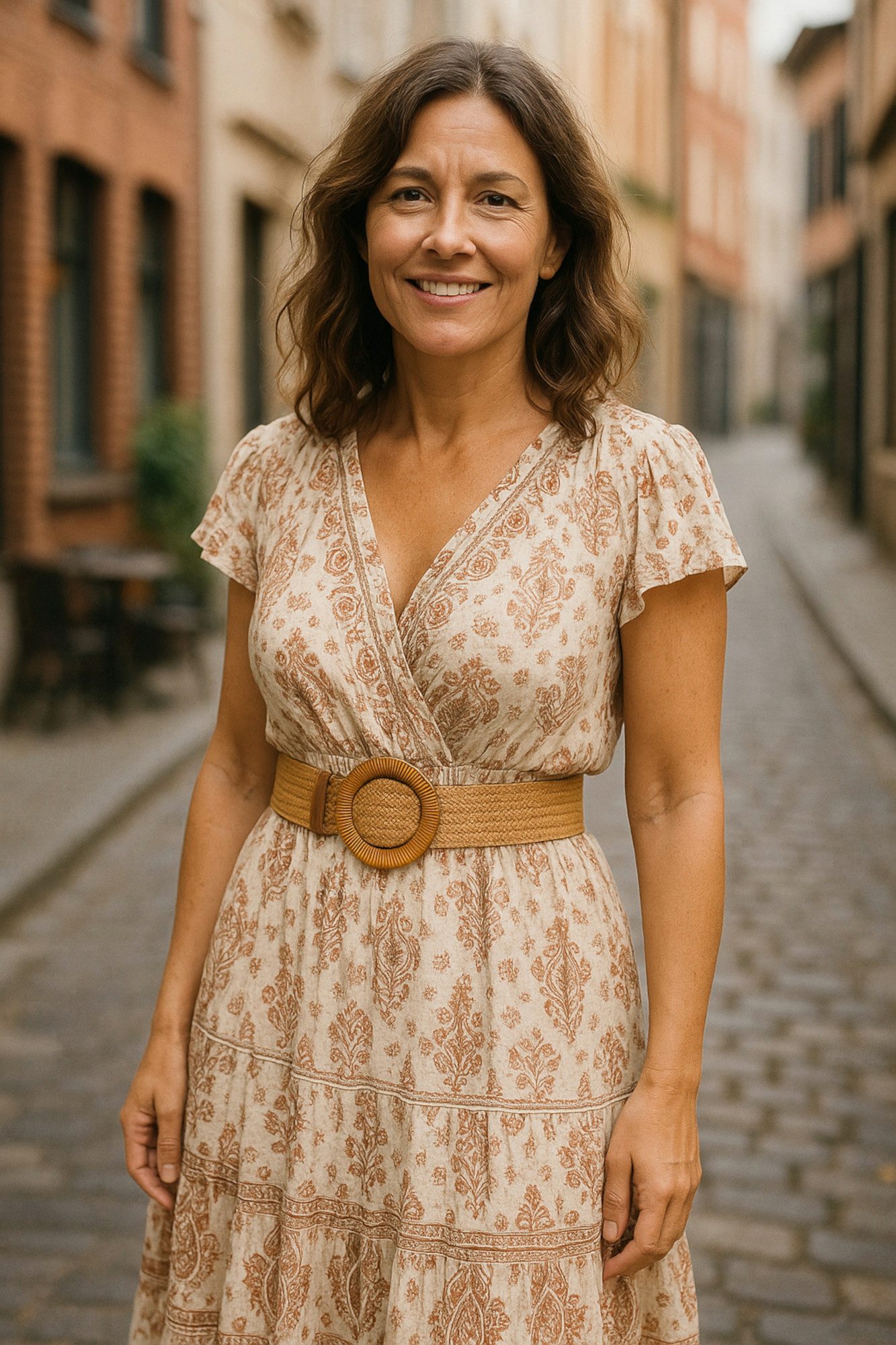 Dank seines flexiblen, dehnbaren Materials passt sich der Gürtel perfekt an deine Silhouette an und sorgt für angenehmen Tragekomfort, ganz ohne Einengen. Die geprägte Schnalle in Kombination mit der praktischen Schlaufe garantiert sicheren Halt und einen stilvollen Sitz – egal ob zur luftigen Tunika, Bluse oder zum Kleid.