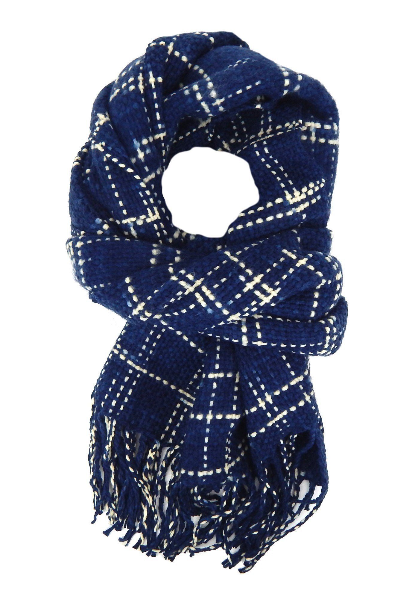 Besondere Merkmale | blau beiger Winterschal weich wärmend Grobstrick |