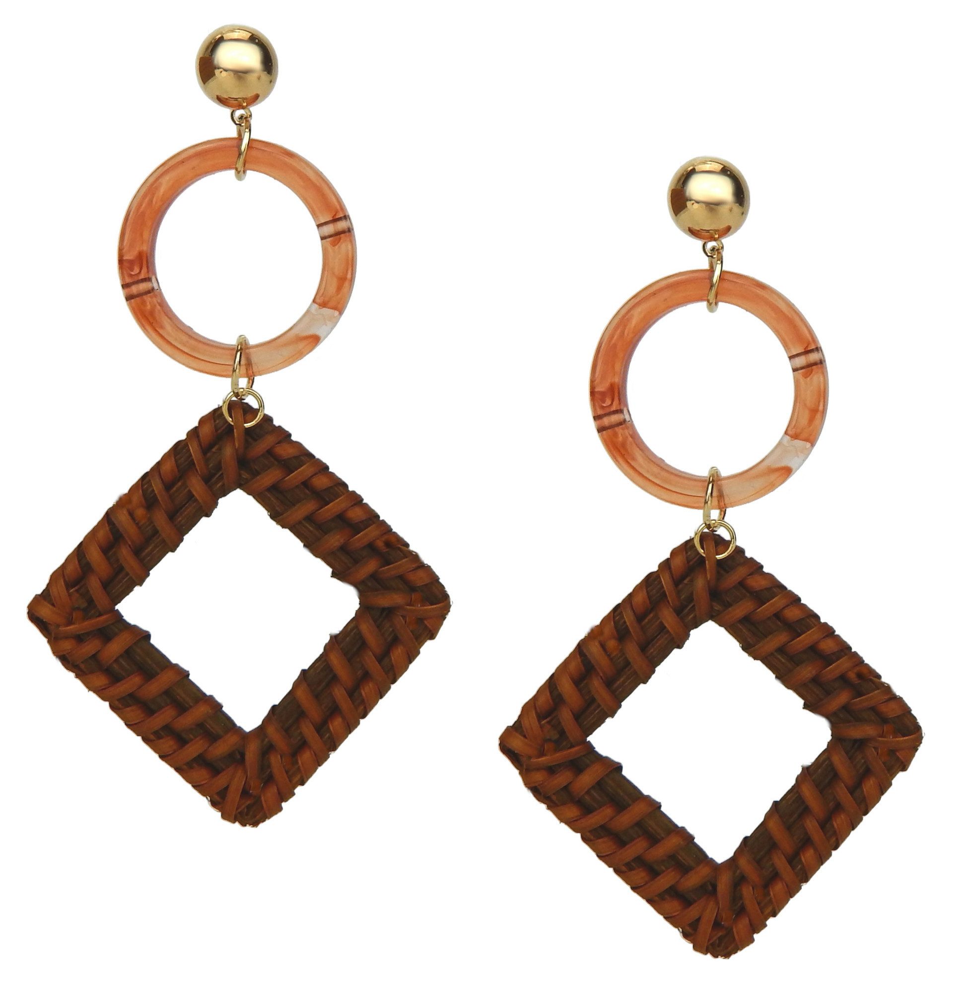 Die Ohrstecker mit Bastdetails verleihen jedem Outfit einen Hauch von Ibiza und Ethno-Chic. Diese Ohrringe sind ein echter Blickfang und ein Must-Have für alle Schmuckliebhaber.