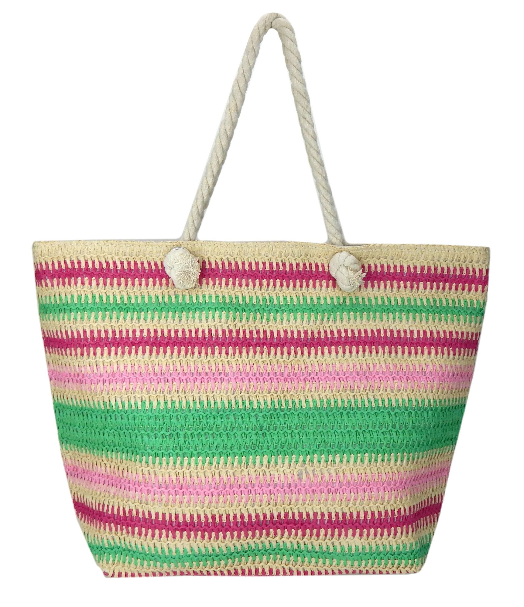 Besondere Merkmale | Basttasche beige bunt Flecht-Optik in 2 Farben Shopper |
