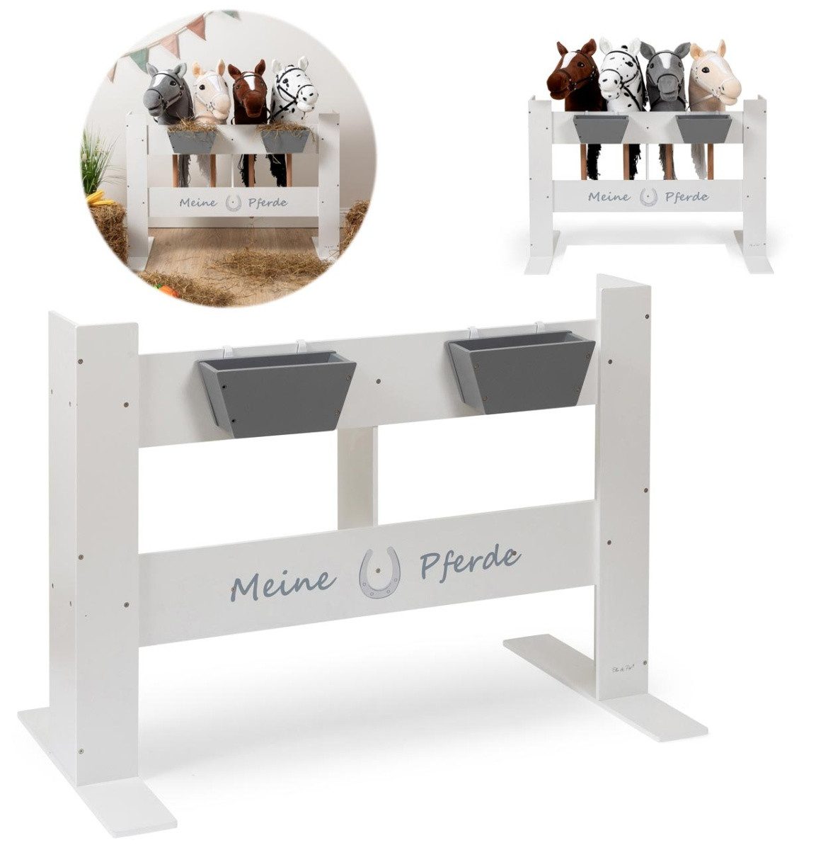 Bringe dein Hobby Horse in ein charmantes und liebevolles Zuhause mit dem Hobby Horse Pferde-Ständer „Meine Pferde“. Dieser einzigartige Ständer im Design eines Pferdezauns bietet nicht nur eine praktische Aufbewahrungslösung für bis zu vier Hobby Horses, sondern verwandelt auch jedes Kinderzimmer oder Spielzimmer in eine kleine Pferdeweide. Die ansprechende Optik und die liebevollen Details machen den Ständer zu einem echten Hingucker.