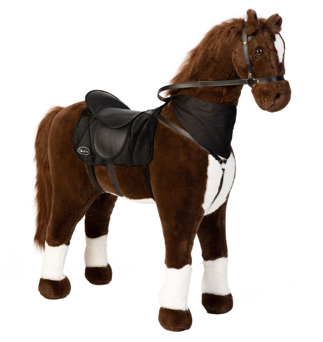 Maße: Das Pferd ist ca. B 26 x L 97 x H 105 cm groß, die Sitzhöhe liegt bei ca. 70 cm. Der Bauchumfang ohne Decke und Sattel liegt bei ca. 90 cm.