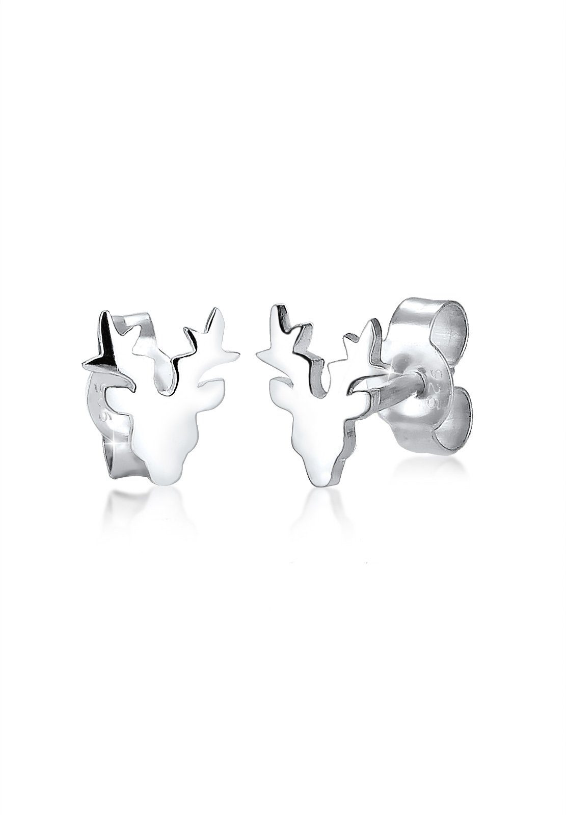 Elli Paar Ohrstecker Elli Ohrringe Hirsch Christmas Tier Motiv 925 Silber, Hirsch