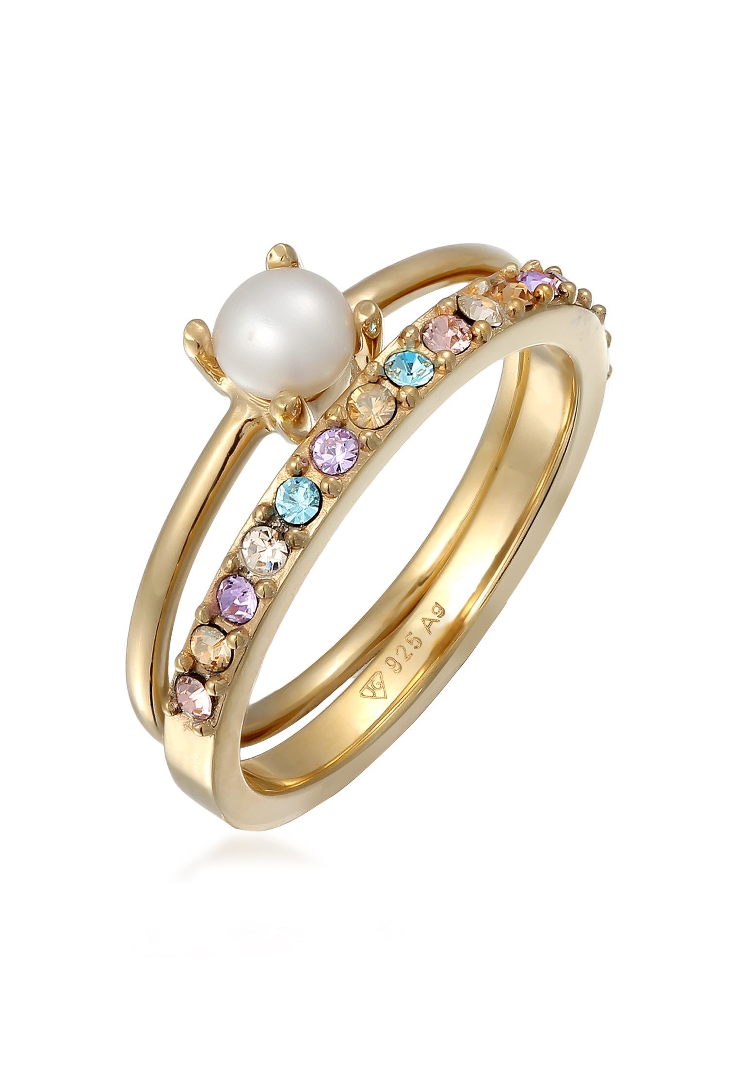 Damenring mit funkelnden Glas Kristallen und Süßwasserzuchtperle