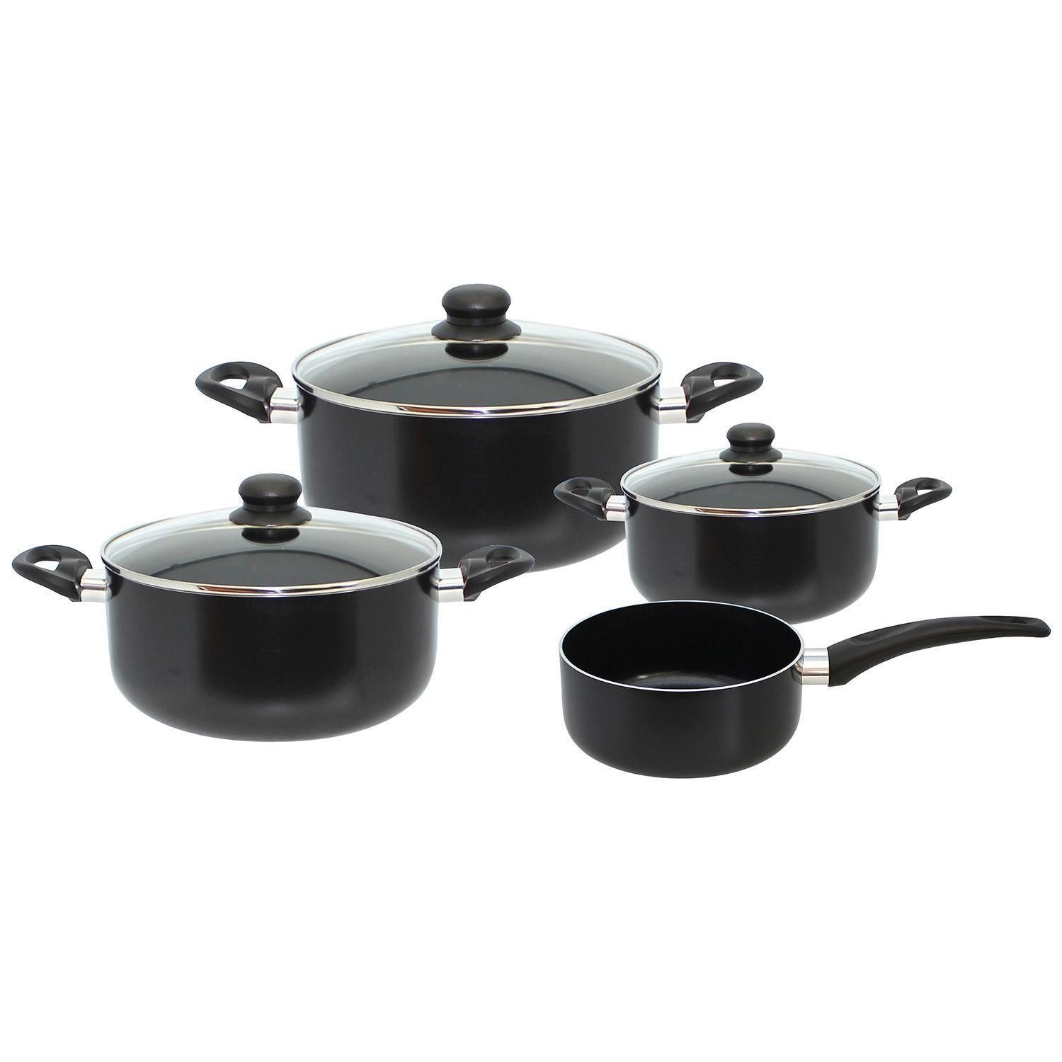 Lieferumfang | 4-teiliges Topf-Set: 3 Kochtöpfe mit Glasdeckel und 1 Stielkasserolle ohne Deckel |
