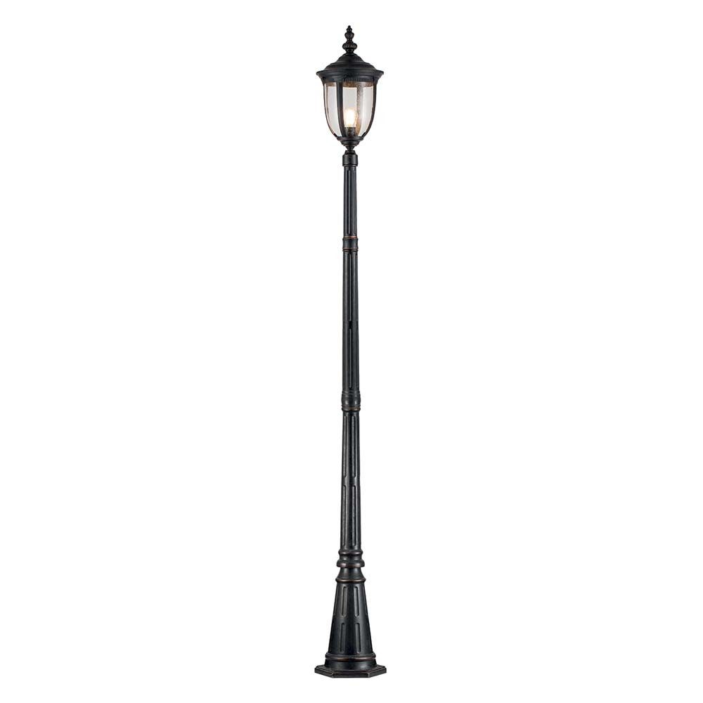 Der Cleveland 1LT -Lampenpfosten, der aus Aluminium mit klarem Säugeblas errichtet und in verwitterter Bronze fertiggestellt ist und mit sauberen klassischen Linien und einem ansprechenden gebogenen Glasschatten gestaltet ist. IP44 bewertet.