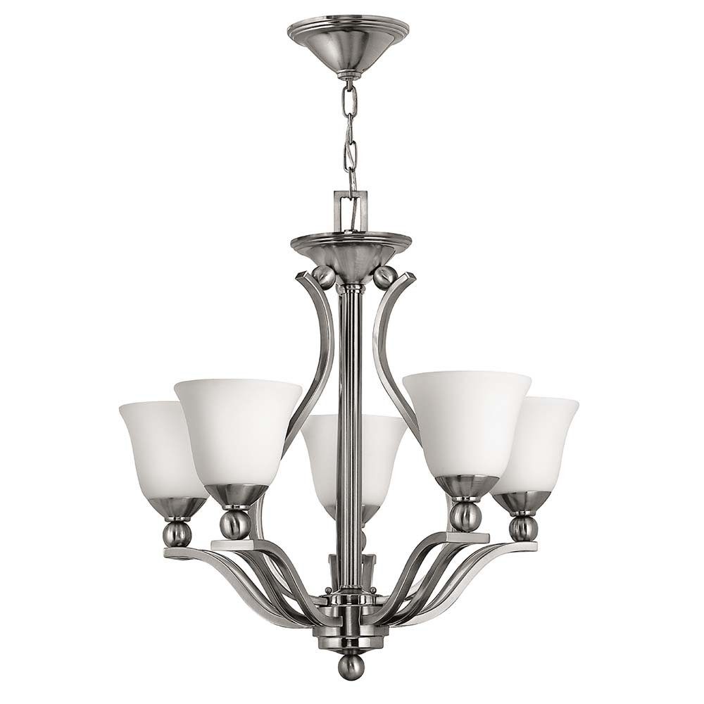 Die anmutigen Linien der geschwungenen Doppelarme von Bolla sorgen für eine sanfte Eleganz, während schwere Kugeln an den Spitzen zu seinem innovativen Stil beitragen. Die starken Proportionen der Arme in gebürstetem Nickel-Finish stehen im Kontrast zu dem dezenten glockenförmigen Glas, das sowohl traditionelle als auch moderne Details vereint.
