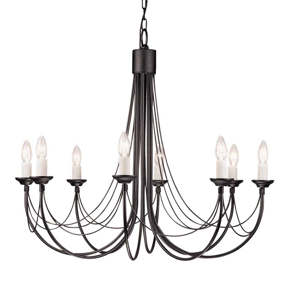 Eine Reihe gotischer Beschläge im Kandelaberstil mit markanten handgebundenen Drahtvorhängen und elfenbeinfarbenen Kerzenröhren.