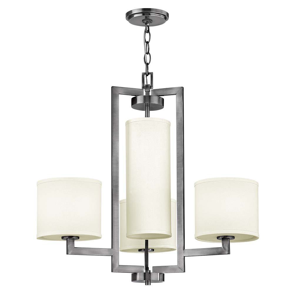 Hampton ist ein modernes Übergangsdesign, das ultimative urbane Raffinesse bietet. Der minimale rechteckige Rahmen, gepaart mit einer dekorativen Acryl-geätzten unteren Linse, wird durch einen zeitgenössischen cremefarbenen Leinentrommelschirm gemildert.