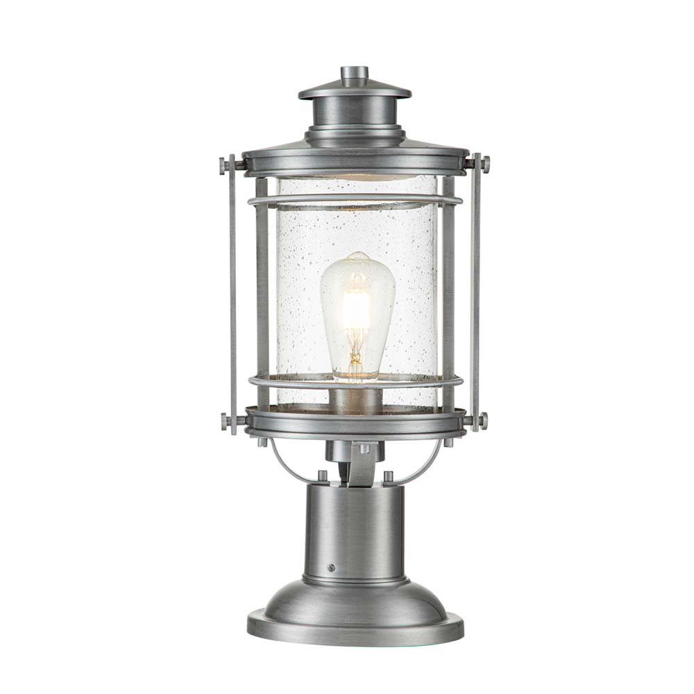 Booker erinnert an die stattliche Form antiker Laternen und verbindet die Textur von schäbigem Glas mit einem sanft leuchtenden Silberrahmen. Merkmale wie abgerundete Zierelemente, passende Knöpfe und ein gebogener Arm schaffen eine Atmosphäre, die sich ideal für die Außenfassade eines Hauses eignet, während robustes Aluminium in Industriequalität den Elementen trotzt. Verwenden Sie eine LED-Glühbirne im Edison-Stil, um den Look zu vervollständigen: eine Hommage an die Vergangenheit gepaart mit völlig moderner Funktionalität.