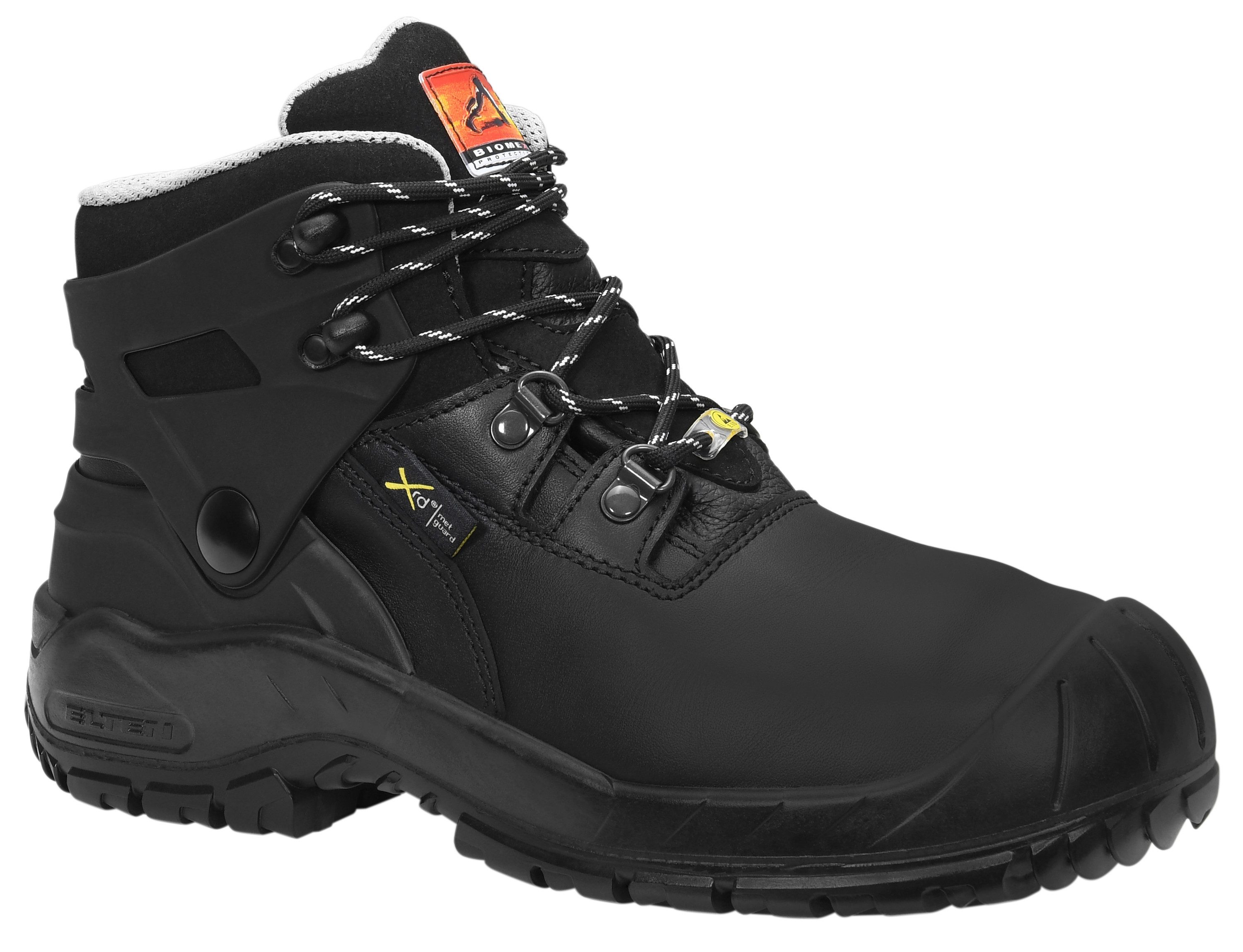 ELTEN - GEMACHT AUS LEIDENSCHAFT - 1910 in Uedem am Niederrhein von Johann van Elten gegründet, brachte seine Vision den Durchbruch für den modernen Sicherheitsschuh, wie wir ihn heute kennen: die revolutionäre Erfindung des ersten ELTEN Arbeitsschuhes aus Leder statt wie damals üblich aus Holz. Heute gehört ELTEN zu den führenden Herstellern von hochwertigen Sicherheits- und Berufsschuhen in Europa mit einer Jahresproduktion von über 3 Mio. Paar, produziert in Uedem am Niederrhein. Aus dieser Tradition heraus stehen für uns der Mensch, sein Schutz und seine Sicherheit im Mittelpunkt unserer Arbeit. === ELTEN Sicherheitsstiefel, ELIO Biomex M ESD S3, 763431, ELTEN BIOMEX PROTECTION, Rindleder, Atmungsaktives Textilfutter, Geschlossene, gepolsterte Lasche, Ganzflächige Einlegesohle ESD PRO black, ESD-fähige Softvlies-Brandsohle, Grobstollige PU/PU Sohle SAFETY-GRIP, EN ISO 20345:2022 S3 WR/FO/SR/SC/LG/M, Form B