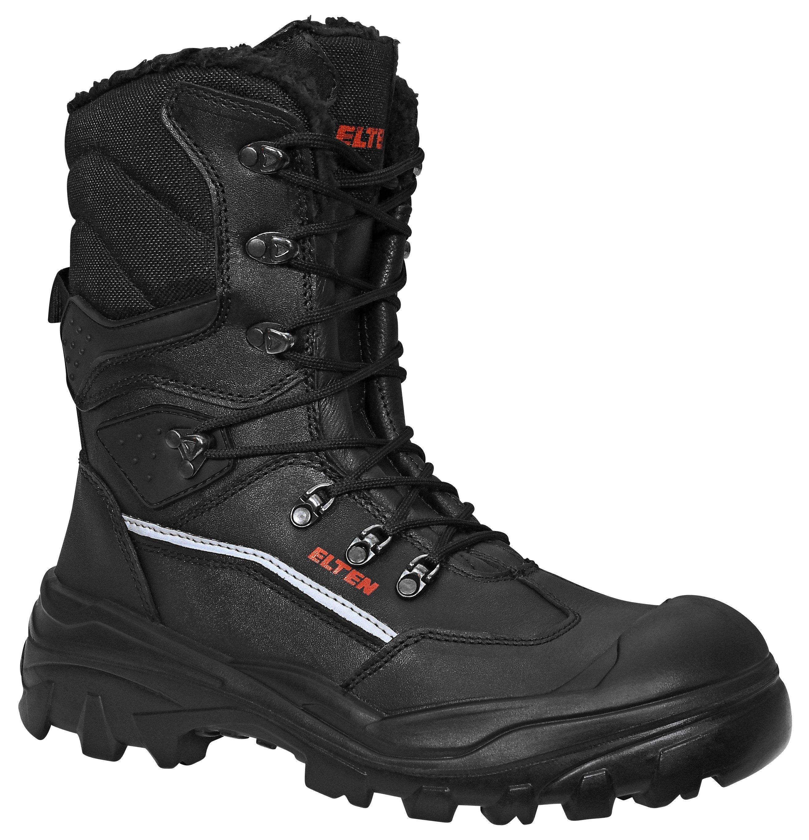 ELTEN - GEMACHT AUS LEIDENSCHAFT - 1910 in Uedem am Niederrhein von Johann van Elten gegründet, brachte seine Vision den Durchbruch für den modernen Sicherheitsschuh, wie wir ihn heute kennen: die revolutionäre Erfindung des ersten ELTEN Arbeitsschuhes aus Leder statt wie damals üblich aus Holz. Heute gehört ELTEN zu den führenden Herstellern von hochwertigen Sicherheits- und Berufsschuhen in Europa mit einer Jahresproduktion von über 3 Mio. Paar, produziert in Uedem am Niederrhein. Aus dieser Tradition heraus stehen für uns der Mensch, sein Schutz und seine Sicherheit im Mittelpunkt unserer Arbeit. === ELTEN Sicherheitswinterstiefel (Form C), ERIC S3S CI, 86541, ELTEN SPECIALS, Rindleder/Hydrophobiertes Textilmaterial CORDURA, Echtes Lammfell, Geschlossene, gepolsterte Lasche, Ganzflächige Warmvlies Einlegesohle, Grobstollige PU/PU Sohle HERCULES, EN ISO 20345:2022 S3S FO/SR/SC/LG/CI, Form C