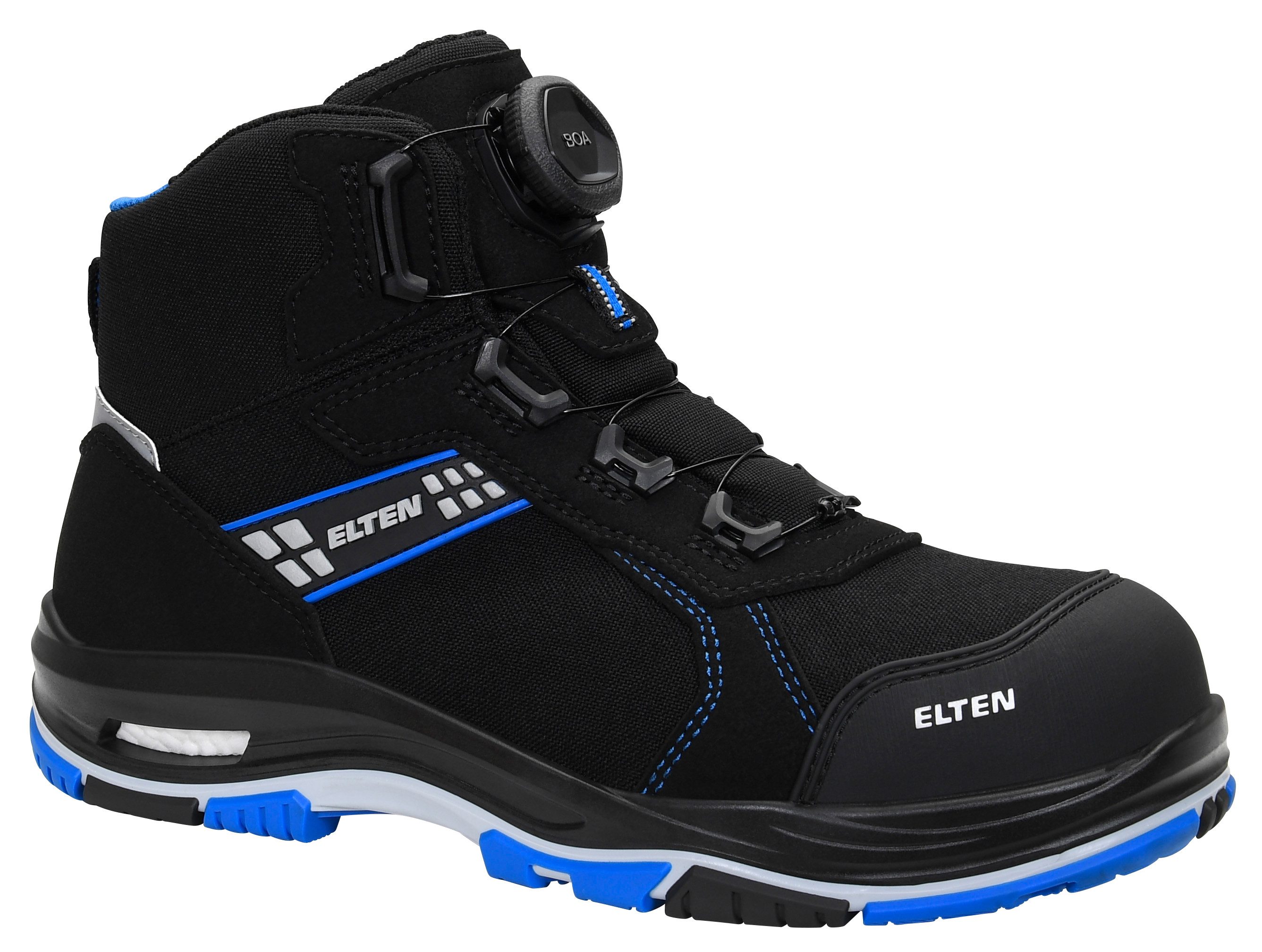 ELTEN - GEMACHT AUS LEIDENSCHAFT - 1910 in Uedem am Niederrhein von Johann van Elten gegründet, brachte seine Vision den Durchbruch für den modernen Sicherheitsschuh, wie wir ihn heute kennen: die revolutionäre Erfindung des ersten ELTEN Arbeitsschuhes aus Leder statt wie damals üblich aus Holz. Heute gehört ELTEN zu den führenden Herstellern von hochwertigen Sicherheits- und Berufsschuhen in Europa mit einer Jahresproduktion von über 3 Mio. Paar, produziert in Uedem am Niederrhein. Aus dieser Tradition heraus stehen für uns der Mensch, sein Schutz und seine Sicherheit im Mittelpunkt unserer Arbeit. === ELTEN Sicherheitsstiefel, IAN XXTP Pro BOA® blue Mid ESD S3S, 761331, ELTEN WELLMAXX, Hydrophobierte Mikrofaser/Hydrophobiertes Textilmaterial, Atmungsaktives Textilfutter, Geschlossene, gepolsterte Lasche, Ganzflächige Einlegesohle ESD PRO black, , TPU/PU Sohle WELLMAXX TRAINERS POWER, EN ISO 20345 S3S FO/SC/SR, Form B