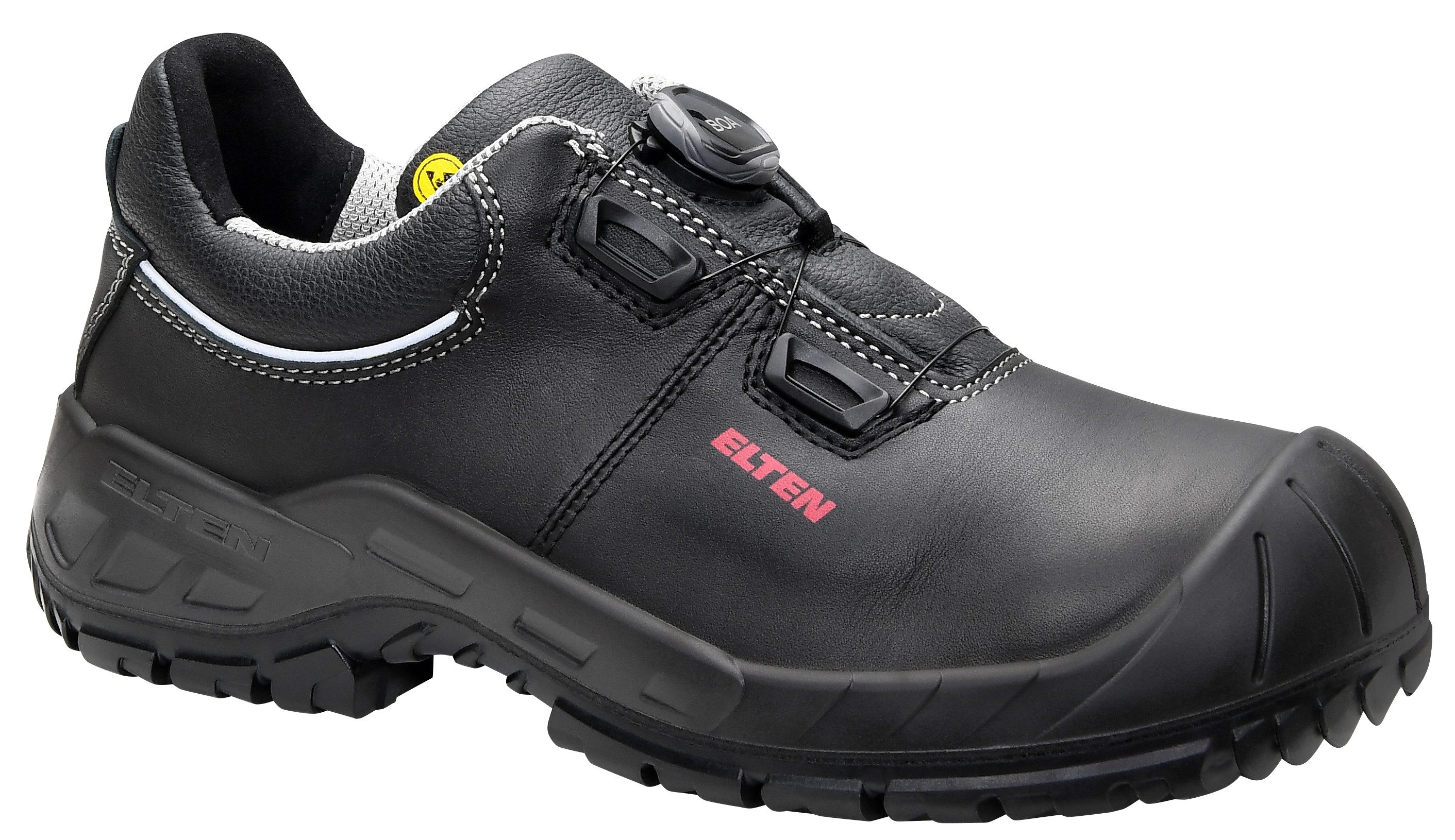 ELTEN - GEMACHT AUS LEIDENSCHAFT - 1910 in Uedem am Niederrhein von Johann van Elten gegründet, brachte seine Vision den Durchbruch für den modernen Sicherheitsschuh, wie wir ihn heute kennen: die revolutionäre Erfindung des ersten ELTEN Arbeitsschuhes aus Leder statt wie damals üblich aus Holz. Heute gehört ELTEN zu den führenden Herstellern von hochwertigen Sicherheits- und Berufsschuhen in Europa mit einer Jahresproduktion von über 3 Mio. Paar, produziert in Uedem am Niederrhein. Aus dieser Tradition heraus stehen für uns der Mensch, sein Schutz und seine Sicherheit im Mittelpunkt unserer Arbeit. === ELTEN Sicherheitshalbschuh, LAURENZO BOA Low ESD S3S, 727451, ELTEN SAFETY-GRIP, Rindleder, Atmungsaktives Textilfutter, Geschlossene, gepolsterte Lasche, Ganzflächige Einlegesohle ESD PRO black, Grobstollige PU/PU Sohle SAFETY-GRIP, EN ISO 20345:2022 S3S FO/SR/SC/LG, Form A