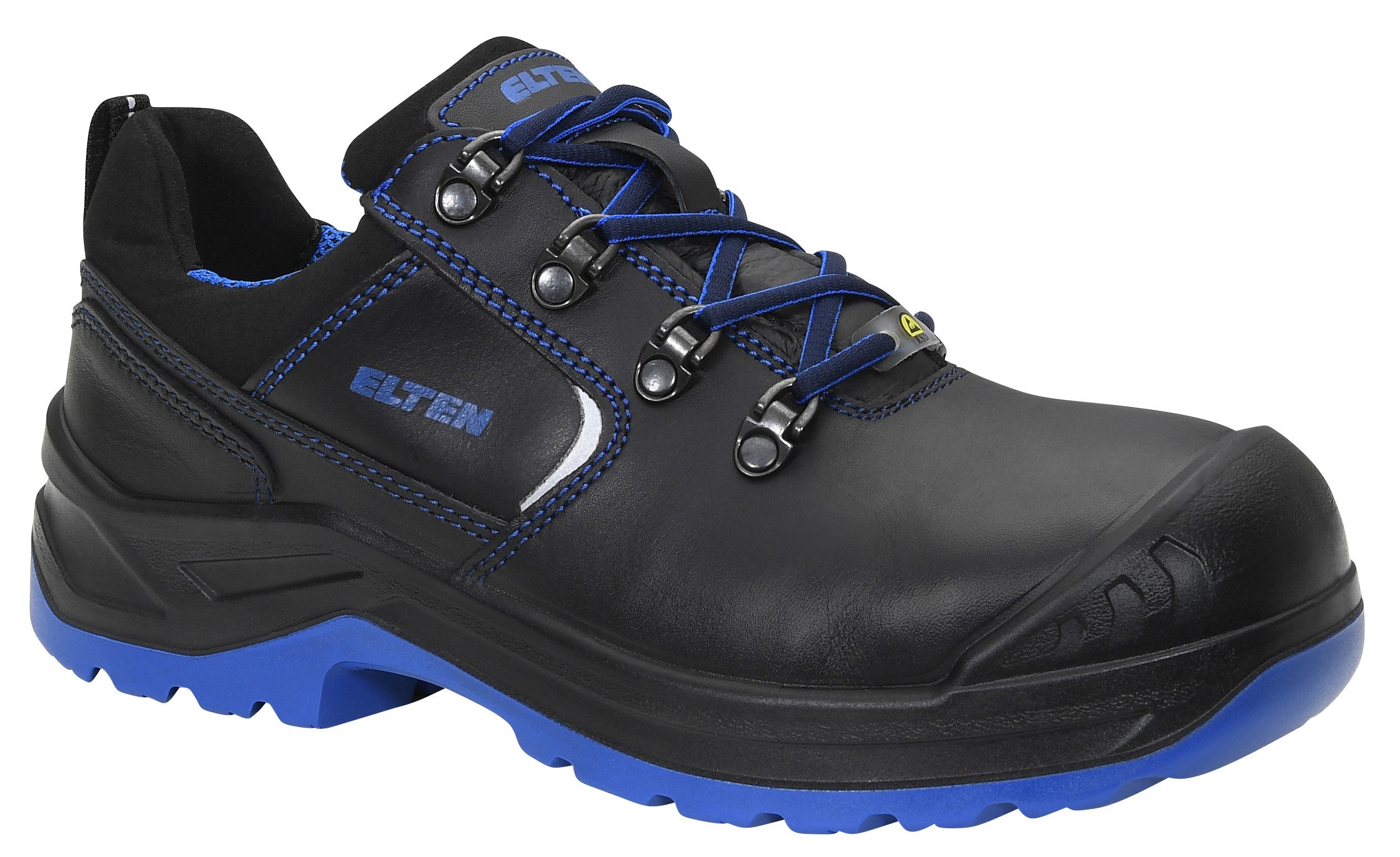 ELTEN - GEMACHT AUS LEIDENSCHAFT - 1910 in Uedem am Niederrhein von Johann van Elten gegründet, brachte seine Vision den Durchbruch für den modernen Sicherheitsschuh, wie wir ihn heute kennen: die revolutionäre Erfindung des ersten ELTEN Arbeitsschuhes aus Leder statt wie damals üblich aus Holz. Heute gehört ELTEN zu den führenden Herstellern von hochwertigen Sicherheits- und Berufsschuhen in Europa mit einer Jahresproduktion von über 3 Mio. Paar, produziert in Uedem am Niederrhein. Aus dieser Tradition heraus stehen für uns der Mensch, sein Schutz und seine Sicherheit im Mittelpunkt unserer Arbeit. === ELTEN Damen-Sicherheitshalbschuh, LENA black-blue Low ESD S3, 742121, ELTEN TREKKING LADY, Rindleder, Atmungsaktives Textilfutter, Ganzflächige Einlegesohle LADIES ESD black, ESD-fähige Softvlies-Brandsohle, PU/PU Sohle TREKKING LADY, EN ISO 20345:2022 S3 FO/SR/SC, Form A