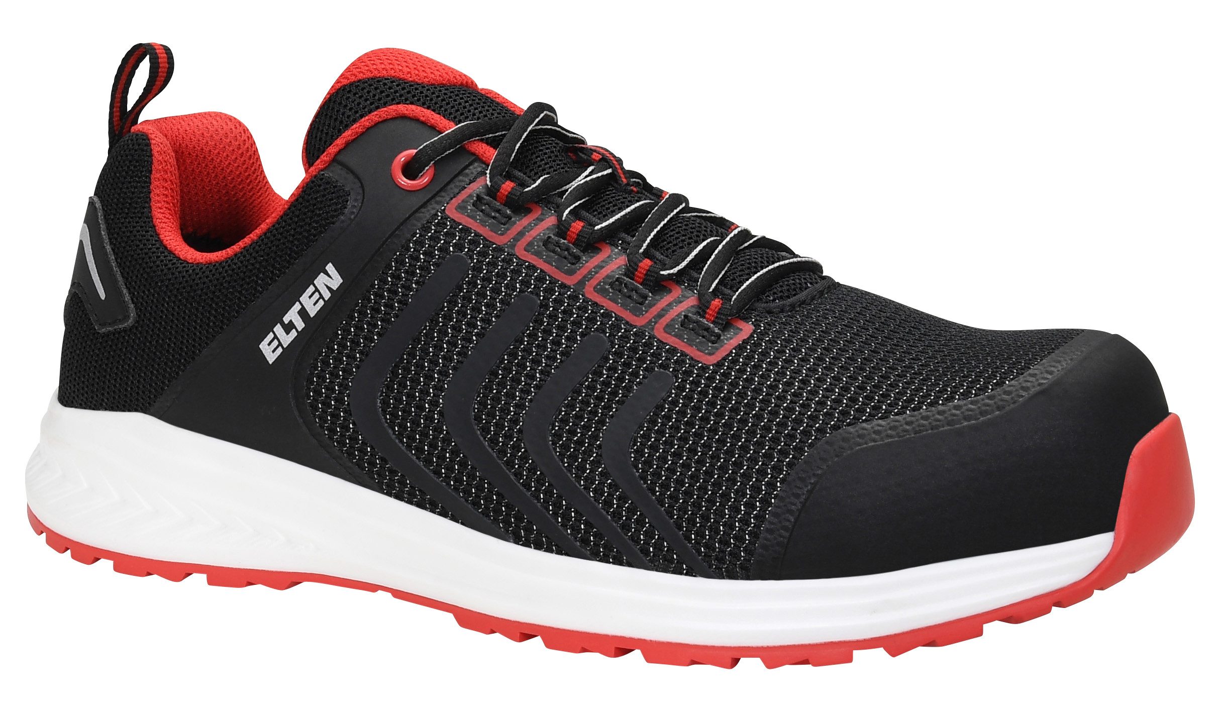 ELTEN - GEMACHT AUS LEIDENSCHAFT - 1910 in Uedem am Niederrhein von Johann van Elten gegründet, brachte seine Vision den Durchbruch für den modernen Sicherheitsschuh, wie wir ihn heute kennen: die revolutionäre Erfindung des ersten ELTEN Arbeitsschuhes aus Leder statt wie damals üblich aus Holz. Heute gehört ELTEN zu den führenden Herstellern von hochwertigen Sicherheits- und Berufsschuhen in Europa mit einer Jahresproduktion von über 3 Mio. Paar, produziert in Uedem am Niederrhein. Aus dieser Tradition heraus stehen für uns der Mensch, sein Schutz und seine Sicherheit im Mittelpunkt unserer Arbeit. === ELTEN Sicherheitshalbschuh, LIVAS black-red Low ESD S1PL, 720831, ELTEN TRANSFOAMERS, Meshmaterial, Atmungsaktives Textilfutter, Gepolsterte Lasche, Ganzflächige Einlegesohle ESD, GUMMI/TPU/EVA Sohle TRANSFOAMERS, EN ISO 20345:2022 S1PL FO/SR/SC/HRO, Form A