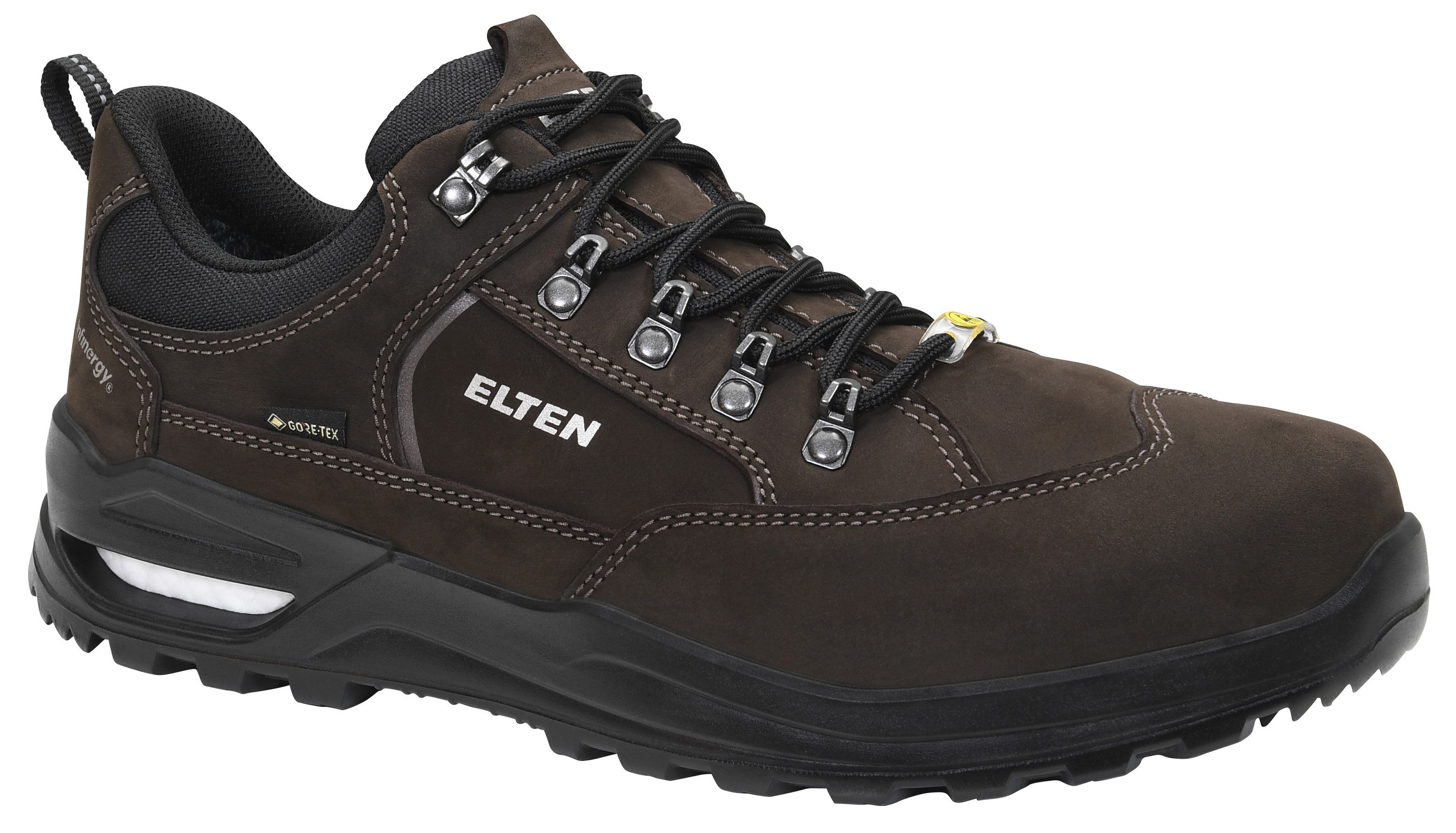 ELTEN - GEMACHT AUS LEIDENSCHAFT - 1910 in Uedem am Niederrhein von Johann van Elten gegründet, brachte seine Vision den Durchbruch für den modernen Sicherheitsschuh, wie wir ihn heute kennen: die revolutionäre Erfindung des ersten ELTEN Arbeitsschuhes aus Leder statt wie damals üblich aus Holz. Heute gehört ELTEN zu den führenden Herstellern von hochwertigen Sicherheits- und Berufsschuhen in Europa mit einer Jahresproduktion von über 3 Mio. Paar, produziert in Uedem am Niederrhein. Aus dieser Tradition heraus stehen für uns der Mensch, sein Schutz und seine Sicherheit im Mittelpunkt unserer Arbeit. === ELTEN Berufshalbschuh, RONAN XXF GTX brown Low ESD O2 WR CI, 972630, ELTEN WELLMAXX, Hydrophobiertes Nubukleder, GORE-TEX Performance Comfort Footwear, Geschlossene, gepolsterte Lasche, Ganzflächige Einlegesohle ESD PRO black mit Anteilen aus recycelten Materialien, ESD-fähige Softvlies-Brandsohle, PU/PU Sohle WELLMAXX FLEX, EN ISO 20347:2022 O2 WR/FO/CI, Form A