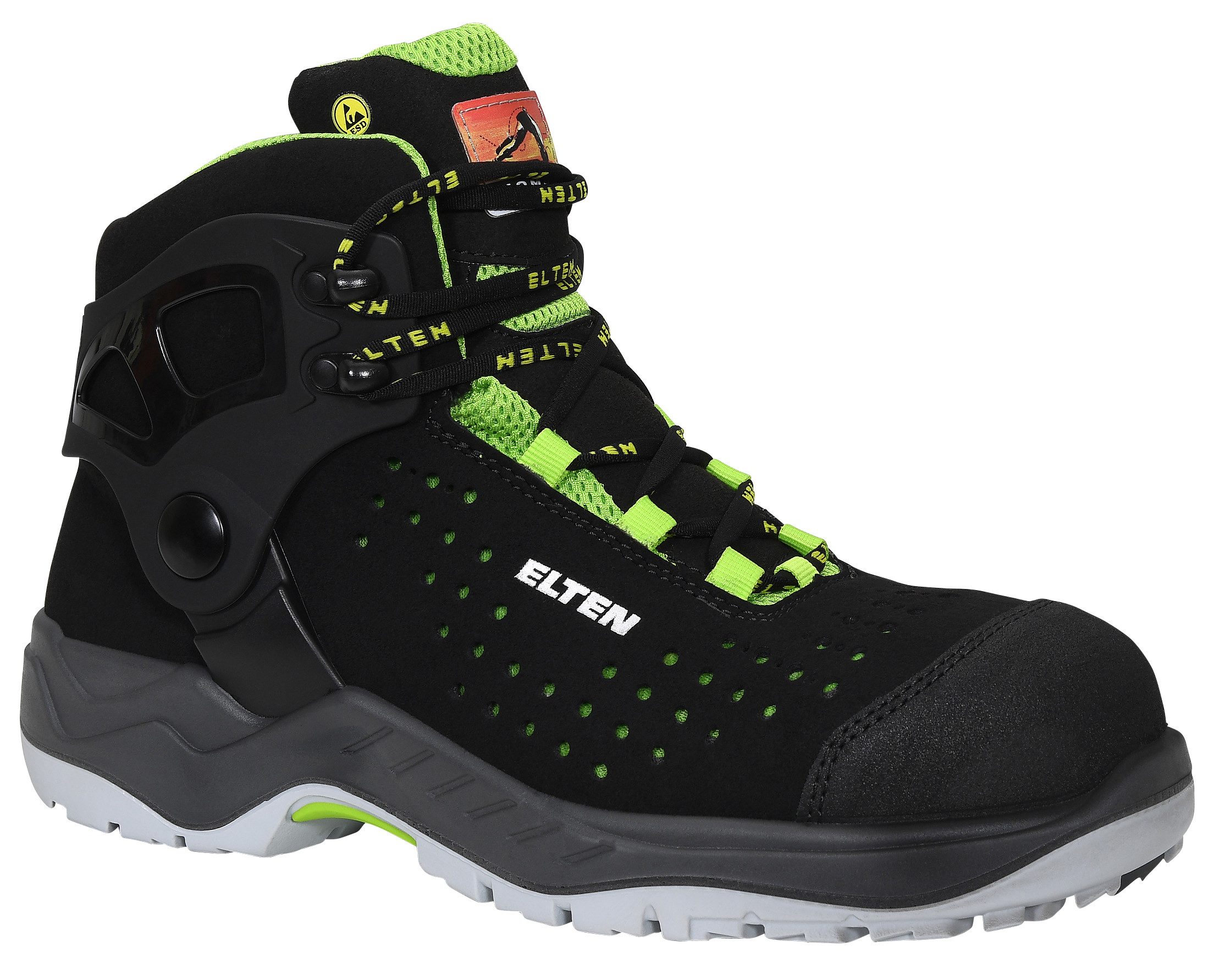 ELTEN - GEMACHT AUS LEIDENSCHAFT - 1910 in Uedem am Niederrhein von Johann van Elten gegründet, brachte seine Vision den Durchbruch für den modernen Sicherheitsschuh, wie wir ihn heute kennen: die revolutionäre Erfindung des ersten ELTEN Arbeitsschuhes aus Leder statt wie damals üblich aus Holz. Heute gehört ELTEN zu den führenden Herstellern von hochwertigen Sicherheits- und Berufsschuhen in Europa mit einer Jahresproduktion von über 3 Mio. Paar, produziert in Uedem am Niederrhein. Aus dieser Tradition heraus stehen für uns der Mensch, sein Schutz und seine Sicherheit im Mittelpunkt unserer Arbeit. === ELTEN Sicherheitsstiefel, TOMMASO green Mid ESD S1PS, 765501, ELTEN BIOMEX PROTECTION, Mikrofaser, Atmungsaktives Textilfutter, Geschlossene, gepolsterte Lasche, Semi-orthopädische Einlegesohle ESD grey, TPU/PU Sohle BIOMEX DYNAMICS, EN ISO 20345:2022 S1PS FO/SR/SC, Form B