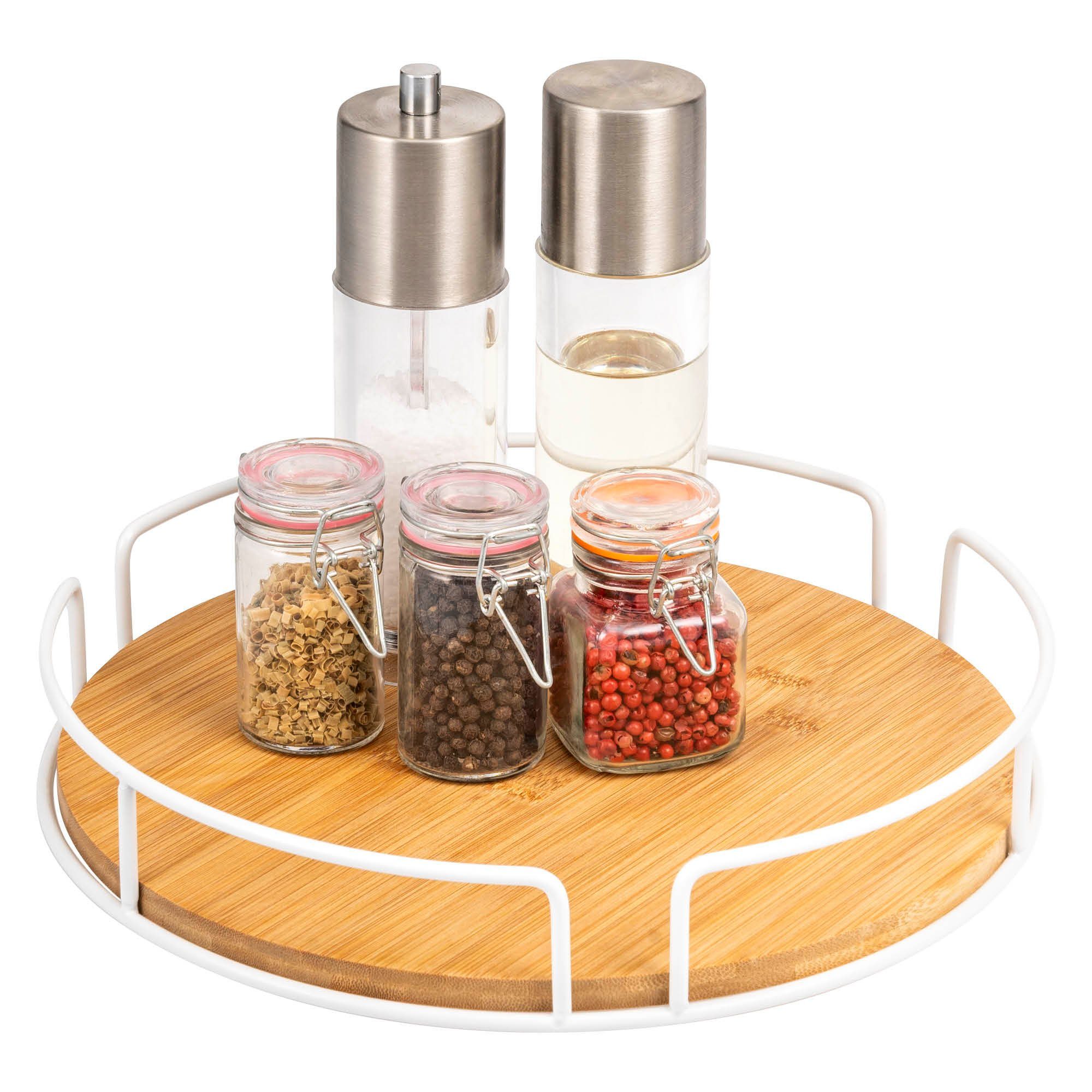 Das drehbare Karussell ist ein Must-Have für jeden Haushalt und eignet sich ideal zur Aufbewahrung von Gewürzen, Ölen oder Obst, um Ordnung in der Küche zu schaffen. Diese Lazy Susan ist ideal als Gewürzregal oder als Badorganizer. Als kleines Tablett verwendet sind die Grillsoßen schnell transportiert und für jeden Gast zu sehen und zu entnehmen.