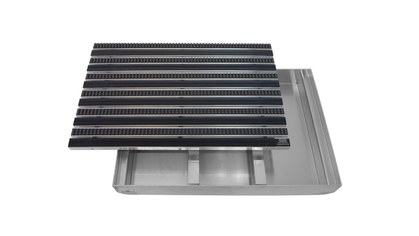 Die Fußmatte mit Bürsteneinlage wird für den Innen /- und Außenbereich empfohlen.