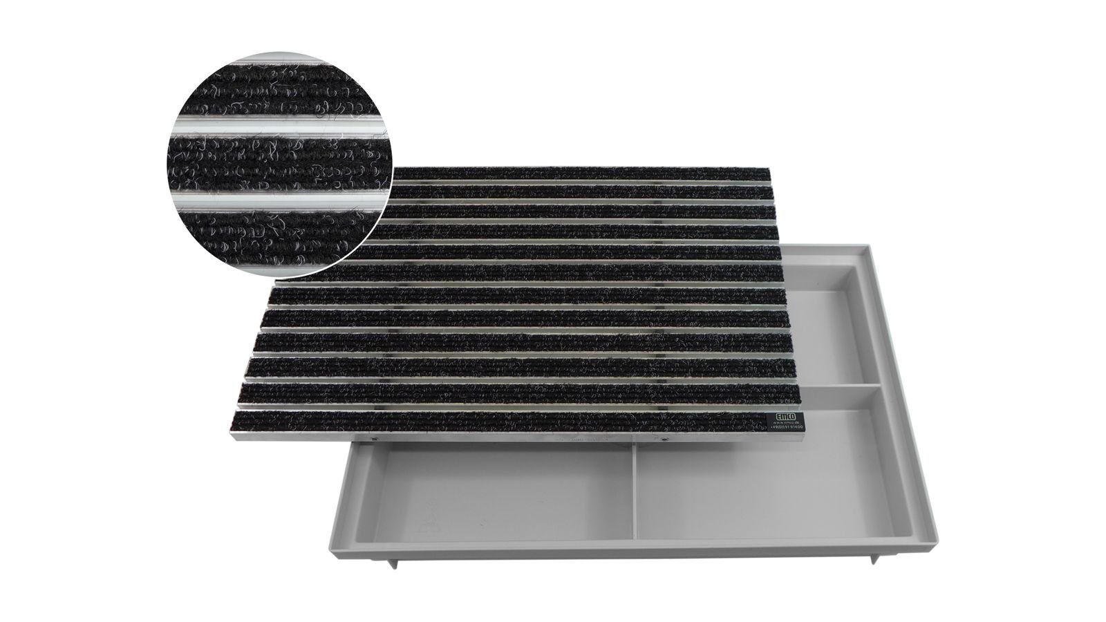Die Fußmatte mit Ripseinlagen wird für den Innenbereich und überdachten Außenbereich empfohlen.