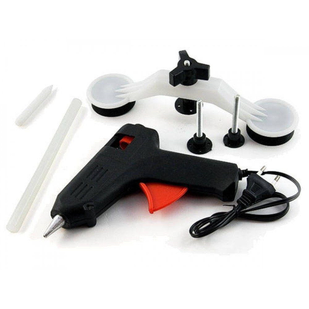 POPS-A-DENT - Auto Dellen , Dellenreparaturset, Ausbeulset Beule Delle Kleine Dellen am Auto - einfach selbst entfernen! (Nur für kleine Dellen und Beulen empfehlenswert - Bei größeren Dellen und Beulen mit Lackschäden bitte an einen Fachmann wenden) Schon wieder durch ein Unwetter oder durch Steinschlag gefahren? Lassen Sie die kleinen, hässlichen Dellen in der Karosserie im Nu wieder verschwinden. Das ist so einfach wie zuverlässig: Die beiliegende Brücke mit dem Lackschonenden Spezial-Heißkleber versehen, auf die Delle setzen und sie mit wenigen Handgriffen ausbeulen! Den Kleber entfernen Sie anschließend mühelos mit dem Spatel. Ihr Wagen sieht aus wie neu - in weniger als 30 Minuten. Geeignet für kleinere Dellen ohne Lackschaden. Profitechnik Einfach und für jedermann anwendbar