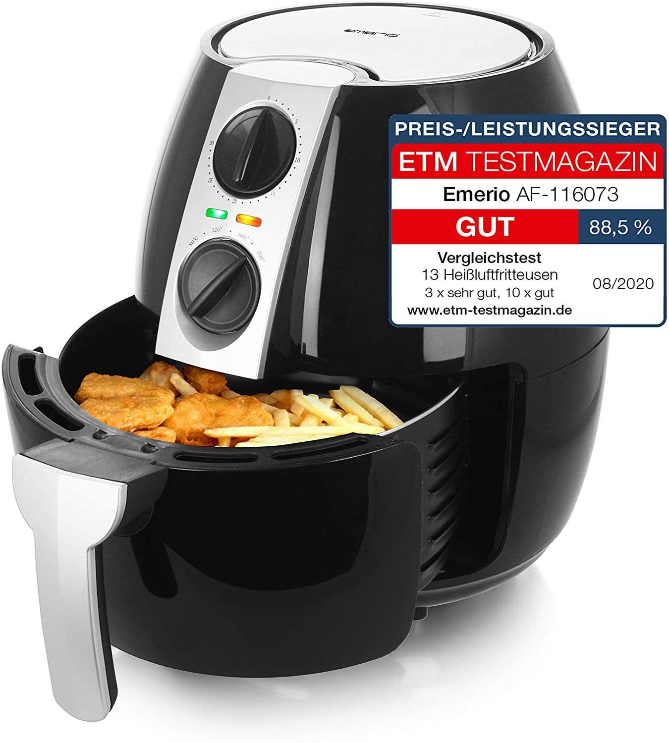 Mit der Heißluft-Fritteuse können Sie Ihre Speisen gesund und fettfrei mit Heißluft zubereiten. Die 1500 Watt leistungsstarke Fritteuse hat einen 4,5 Liter großen Behälter. Mit der Heißluftfritteuse können Sie wie bei einer handelsüblichen Fritteuse mit Öl alle Lebensmittel punktgenau zubereiten, egal ob Sie Lust auf schmackhafte Kartoffelecken, knusprige Pommes oder Nuggets haben.