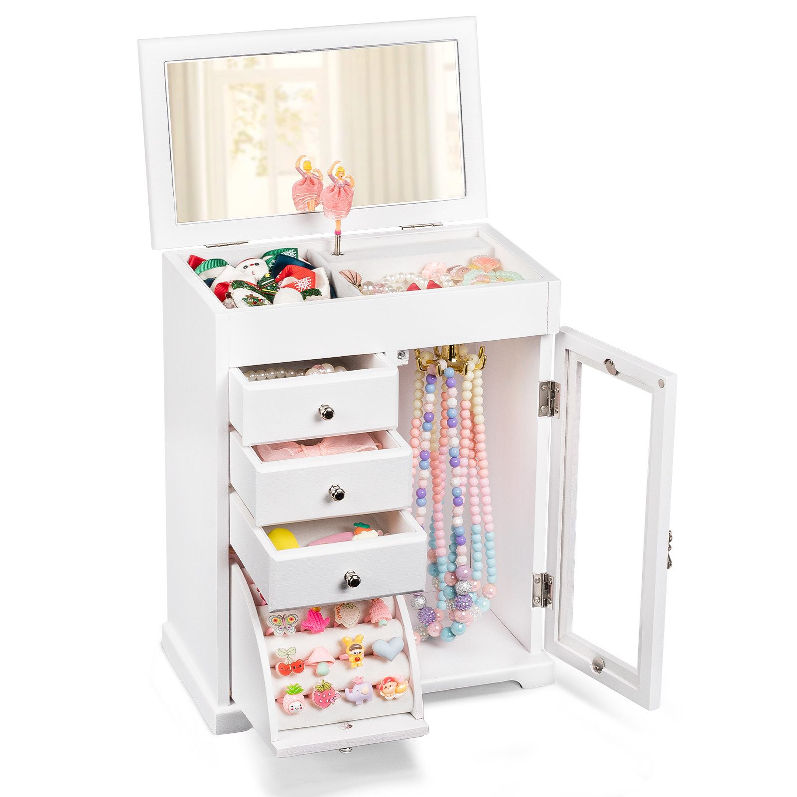 No Messy Necklace Holder: Die Schwingtür auf der rechten Seite ist mit einem Halskettenkarussell Haken ausgestattet, die Ihre kleinen Mädchen hängen ihre Halsketten gut und schützen sie vor Kratzern macht.
