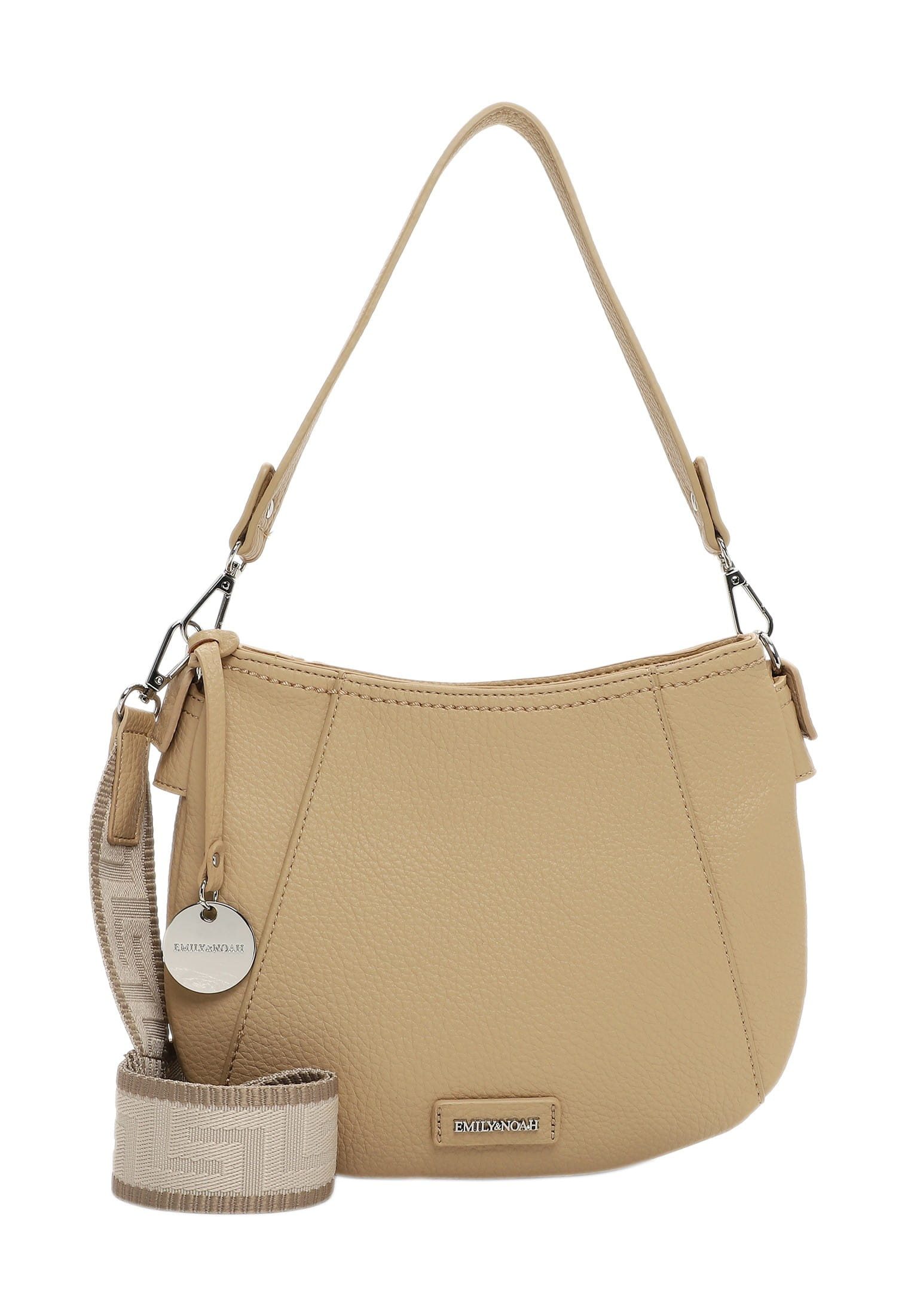 Eine vielfältige Auswahl wunderschöner Taschen und Accessoires - EMILY & NOAH Eine Handtasche zeigt die Persönlichkeit einer Frau. Ob aufgeräumt oder etwas chaotisch - Frauen lieben sie einfach! Der Beutel E&N Enna kommt in Uni-Design mit längenverstellbarem, abnehmbarem Umhängeriemen und sieht einfach gut aus. Er ist ein lässiges Statement für den Alltag. Ein Beutel auf den man zählen kann. Das Modell besteht aus Feinsynthetik und lässt sich mit einem Reißverschluss verschließen. Ein optisches Highlight ist der Beutel mit Echtleder-Optik und dem Uni-Design. Mit dem Accessoire von EMILY & NOAH wird ein durch und durch individueller Stil kreiert. Kombiniert mit einer schicken Hose, einem Kleid oder einer modischen Tunika zeigen die Produkte des Labels wahre Persönlichkeit. Der Beutel hat ein übersichtliches Hauptfach. Ein Reißverschluss-Fach auf der Rückseite schafft zusätzlichen Stauraum und ermöglicht den unkomplizierten Zugang zu Dingen, die man zügig zur Hand haben möchte. Das Modell E&N Enna ist von der Haptik eher weich und daher wirklich angenehm zu tragen. Ein Logo-Patch schmückt optisch und hebt den einzigartigen Look dieses neuen Favoriten hervor. Über der Schulter ist dieses Modell mit dem angenehmen, längenverstellbaren und abnehmbaren Umhängeriemen zu tragen. Mit dem mittelgroßen Beutel lassen sich Haustürschlüssel, Portemonnaie, Smartphone und Co. problemlos transportieren.