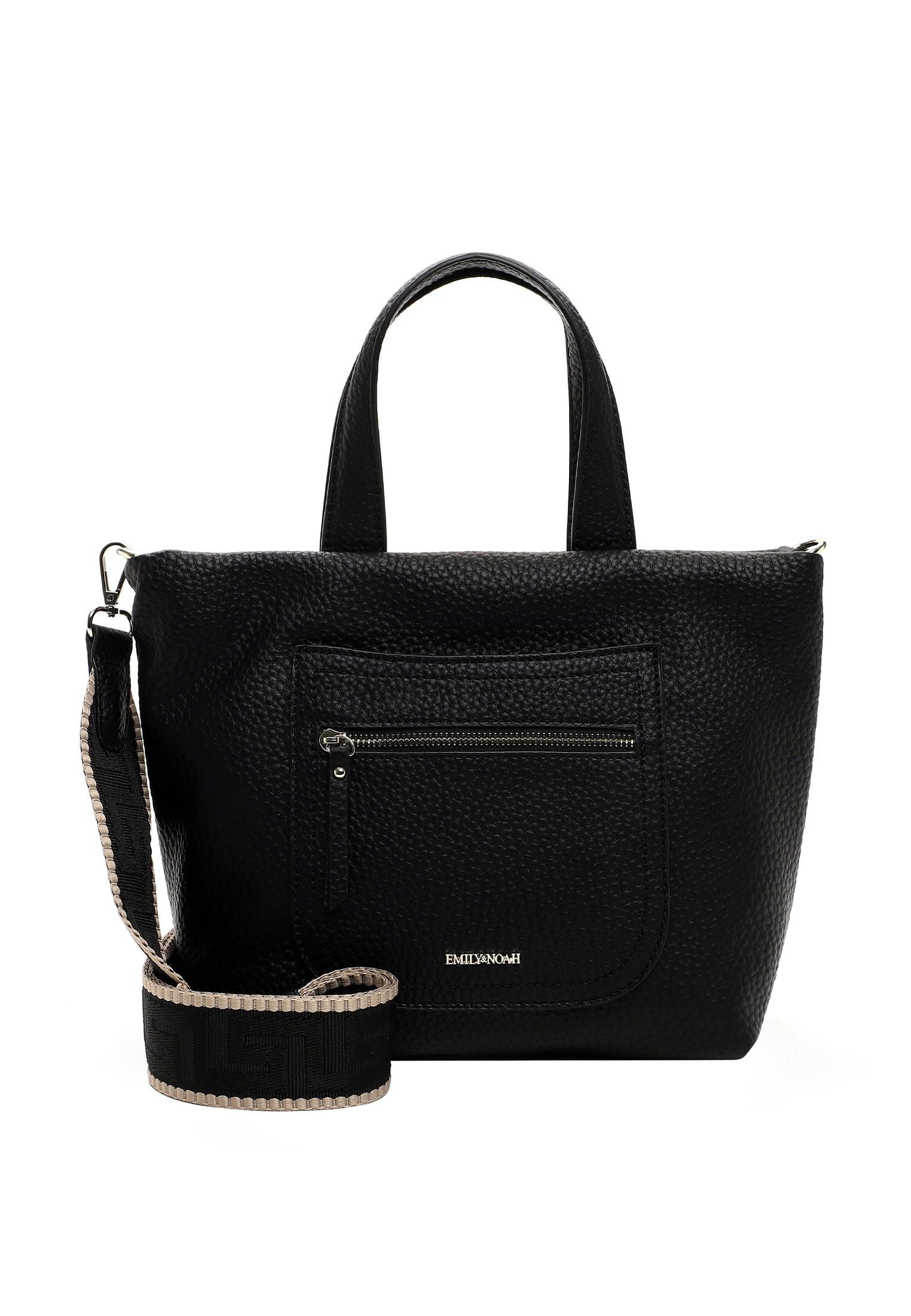 EMILY & NOAH - für stilsichere Frauen, die wissen, was ihnen gefällt Eine Handtasche ist wie eine beste Freundin, sie lässt einen nie im Stich und sie ist immer da, wenn es drauf ankommt. Der Shopper E&N Heidi kommt aus Feinsynthetik mit Reißverschluss und sieht einfach toll aus. Ob für Office, Uni oder in der freien Zeit - mit ihm lässt sich einfach jedes Abenteuer bestreiten. Das Modell besteht aus Feinsynthetik und lässt sich mit einem Reißverschluss verschließen. Mit seiner Echtleder-Optik und dem Uni-Design ist der hochwertige Shopper ein echter Hingucker. Mit dem Accessoire von EMILY & NOAH wird ein ganz und gar individueller Stil geschaffen. Kombiniert mit einer schicken Hose, einem Kleid oder einer angesagten Bluse zeigen die Produkte des Labels wahre Persönlichkeit. Ordnung ist das halbe Leben. Ein übersichtliches Hauptfach sind in der Tasche integriert. Ein Rückfach mit Reißverschluss sorgt für zusätzlichen Stauraum und erlaubt den unkomplizierten Zugang zu Dingen, die man zügig zur Hand haben möchte. Das Modell E&N Heidi ist von der Haptik eher weich und daher besonders angenehm zu tragen. Für das besondere Extra sorgt die Applikation mit Single Lettering, die einen zusätzlichen Akzent setzt. Als Schultertasche ist dieses Modell den zwei Tragegriffen zu tragen. Mit dem mittelgroßen Shopper lassen sich Haustürschlüssel, Portemonnaie, Handy und Co. problemlos transportieren.