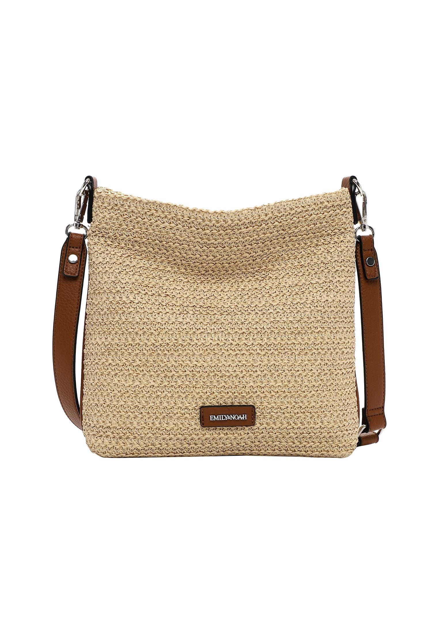 EMILY & NOAH - für modebewusste Frauen, die wissen, was sie wollen Natürlich, selbstbewusst und schön - so präsentieren sich Frauen im Alltag. Selbstverständlich am liebsten mit ihrer Lieblingstasche. Die Umhängetasche E&N Elda kommt in Bast-Optik mit längenverstellbarem, abnehmbarem Umhängeriemen und sieht einfach gut aus. Sie ist ein lässiges Statement für den Alltag. Eine Umhängetasche auf die man zählen kann. Gefertigt ist das Modell, das sich mit einem Reißverschluss verschließen lässt, aus Feinsynthetik. Durch das Material ist es angenehm im Griff. Ein optisches Highlight ist die Umhängetasche mit Bast-Optik und dem zweifarbigen Design. Mit dem Accessoire von EMILY & NOAH wird ein individueller Stil geschaffen. Kombiniert mit einer schicken Hose, einem Kleid oder einer angesagten Bluse zeigen die Produkte des Labels wahre Persönlichkeit. Ordnung ist das halbe Leben. Ein übersichtliches Hauptfach sind in der Tasche integriert. Aufgrund des Reißverschluss-Fachs auf der Rückseite hat man zusätzlichen Stauraum und zügigen Zugriff auf alle wichtigen Dinge. Das Modell E&N Elda ist von der Haptik eher fest, sodass Dinge, die nicht geknickt werden sollen, sicher transportiert werden. Für das süße Extra sorgt die Applikation mit dem Logo-Patch, die einen zusätzlichen Akzent setzt. Dieser neue Lieblingsbegleiter wird dank längenverstellbarem, abnehmbarem Umhängeriemen einfach und bequem über der Schulter getragen. Manchmal braucht man etwas mehr Platz in der Tasche. In dieses Modell passt einfach alles - Portemonnaie, Handy und zur Not noch ein Tablet, das einem die Wartezeit auf die Freundin versüßt, wenn sie sich mal wieder verspätet.