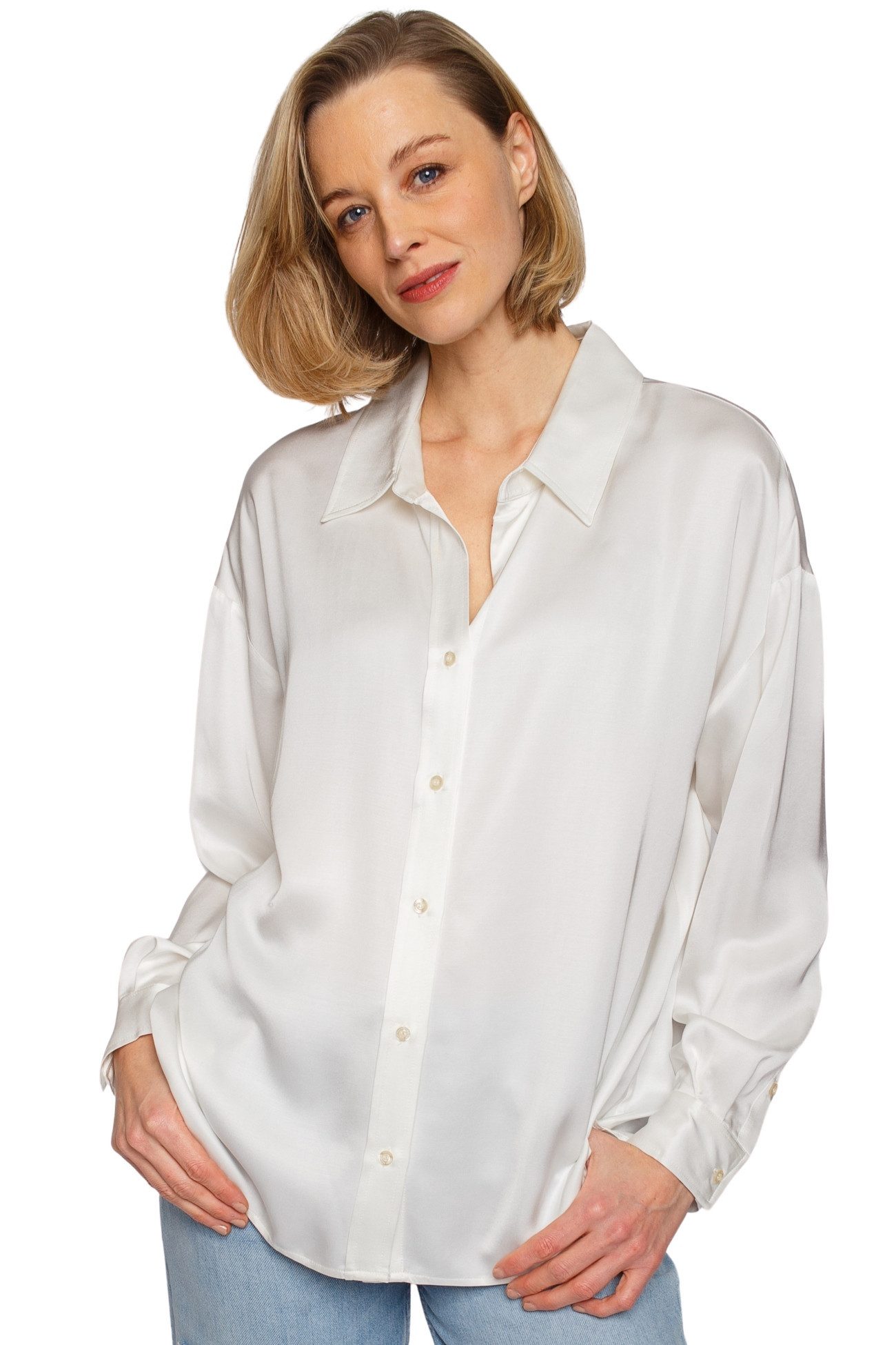 Hergestellt aus leicht fließendem Viskose-Satin in Offwhite, verleiht sie Ihnen einen eleganten Look. Die Bluse hat weite Ärmel mit breiten Manschetten für einen modernen Touch.