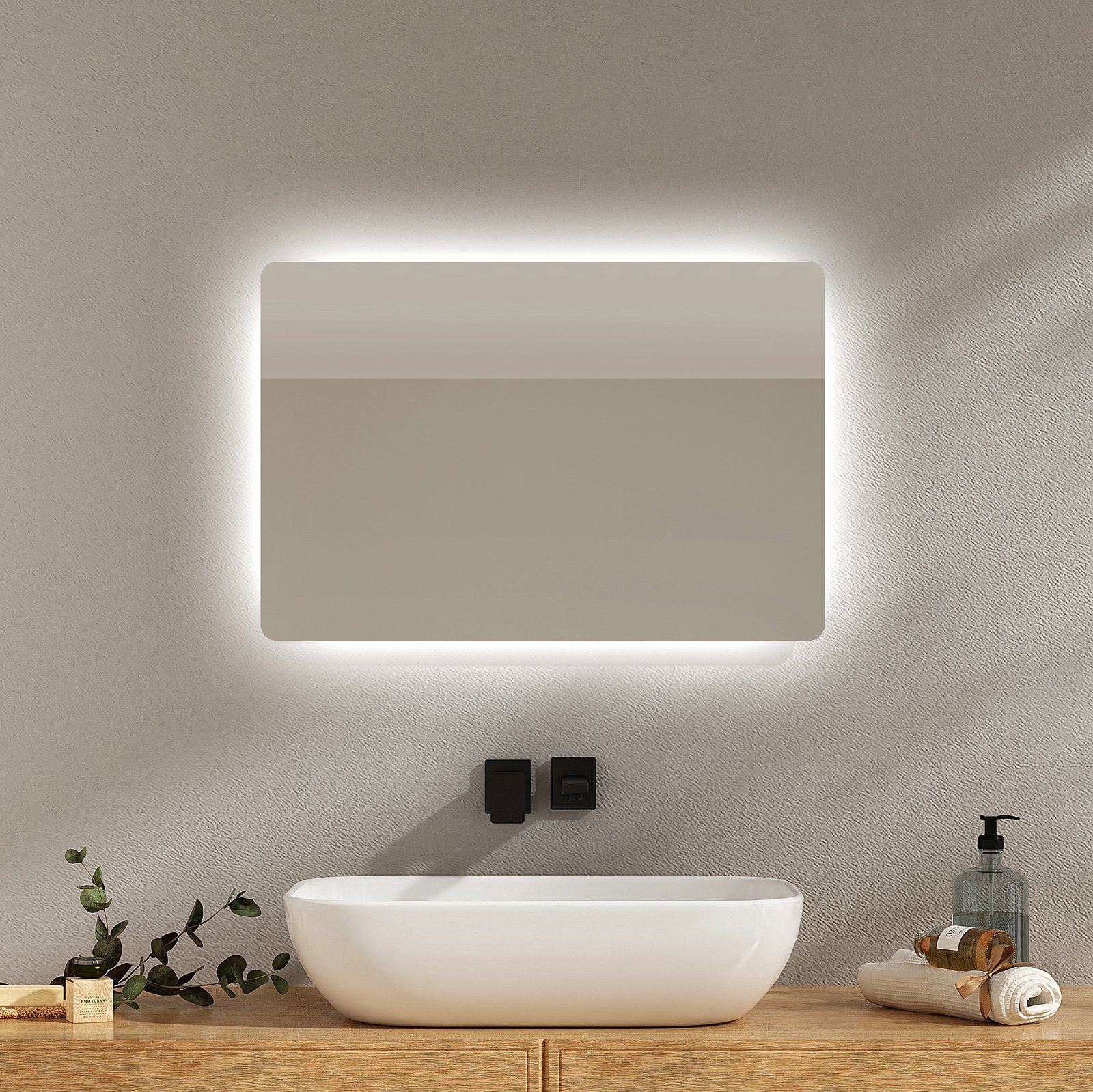 EMKE LED-Lichtspiegel Wandspiegel mit Beleuchtung und Beschlagfrei 2 Farben des Lichts, Druckknopfschalter,Energiesparend