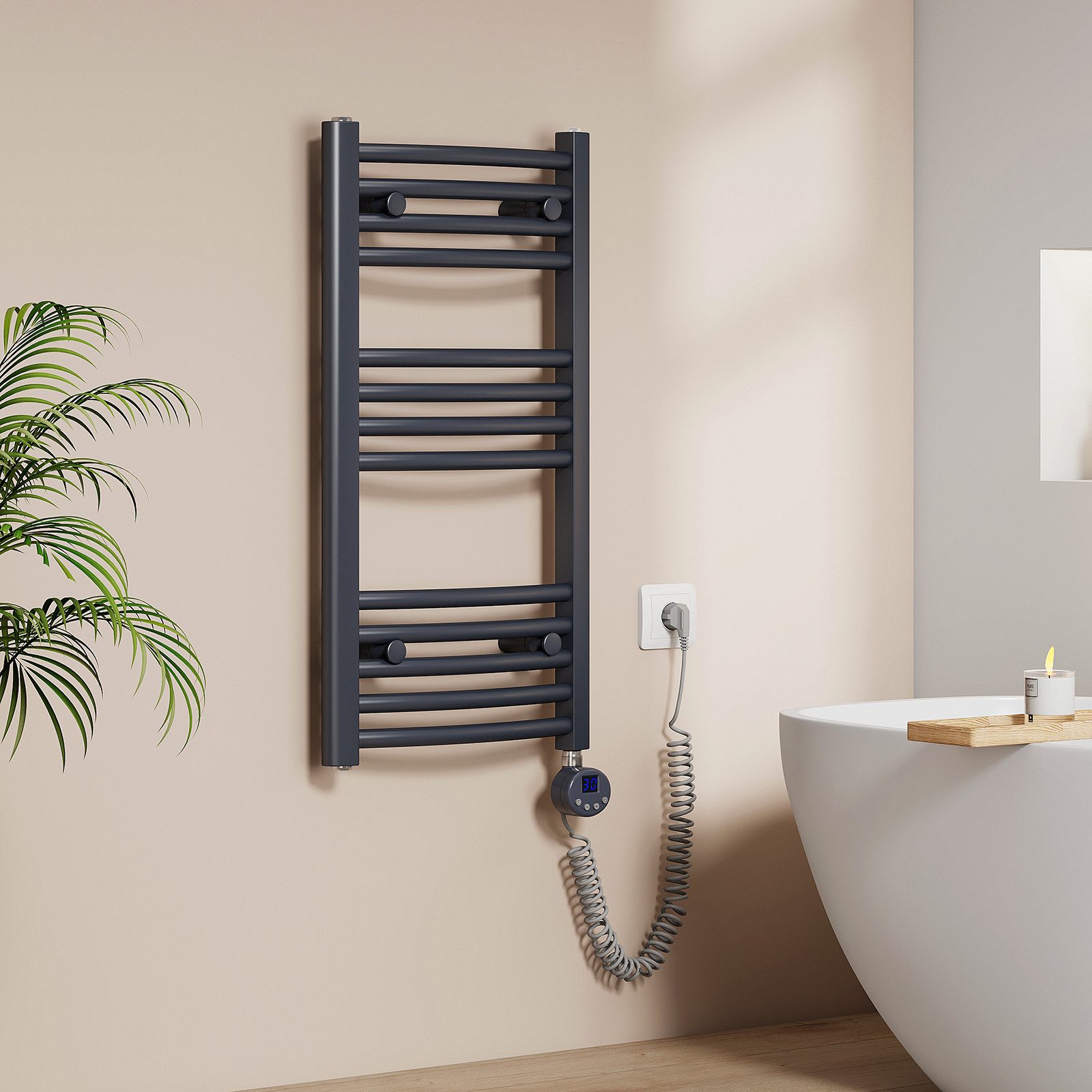 EMKE Elektrisch Handtuchhalter gebogene Form mit Heizstab Timing funktion - Leben mit Stil