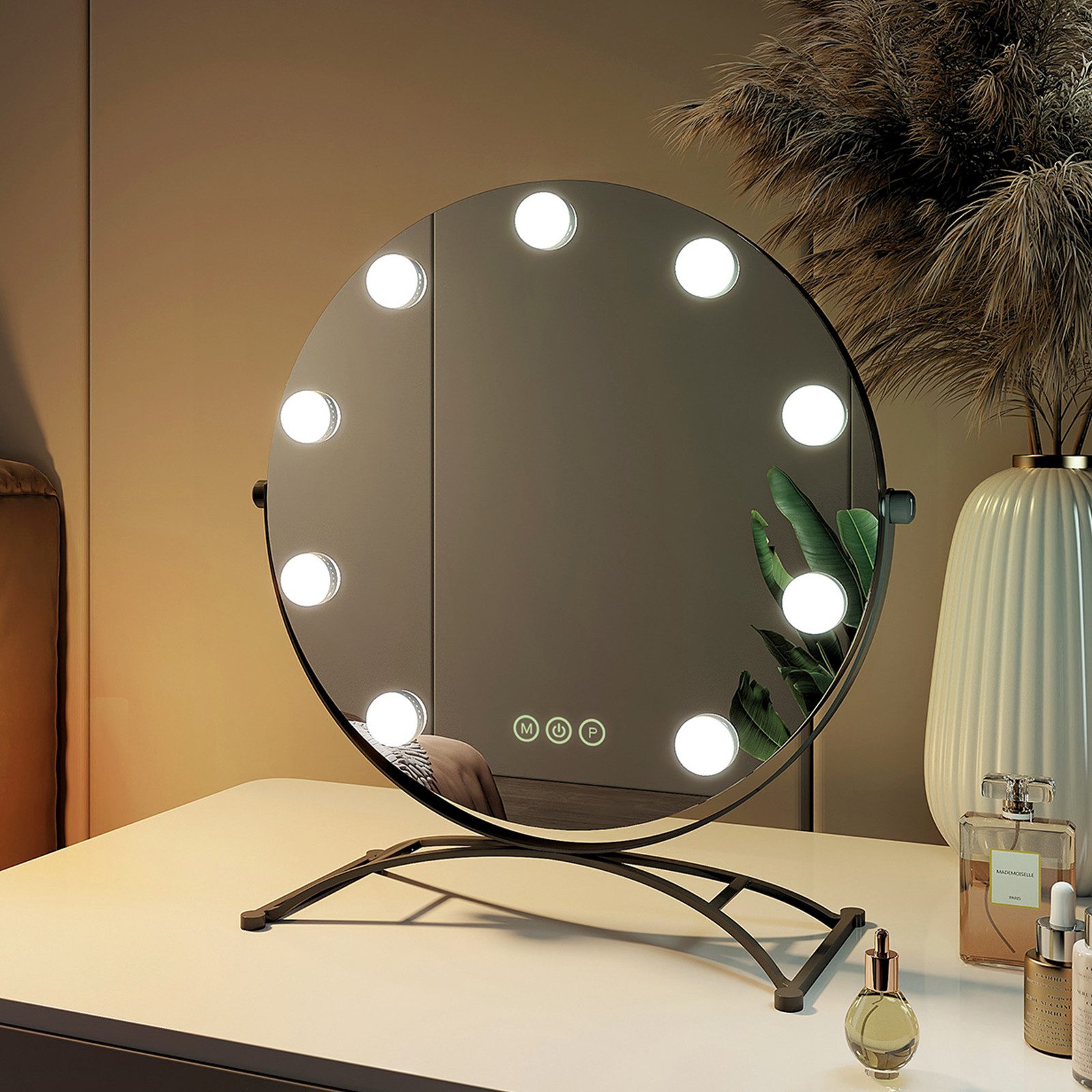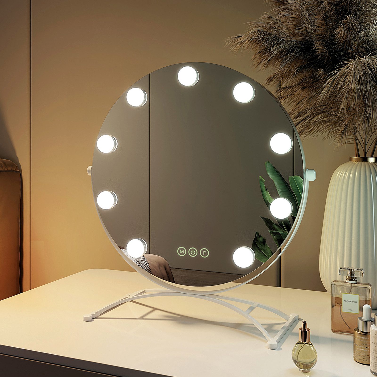 EMKE Runder Schminkspiegel Hollywood Spiegel mit Beleuchtung LED Tischspiegel, mit Touch, 3 Lichtfarben,Dimmbaren LED-Leuchtmitteln,7 x Vergrößerungsspiegel,Memory-Funktion, 360° Drehbar,Weiß